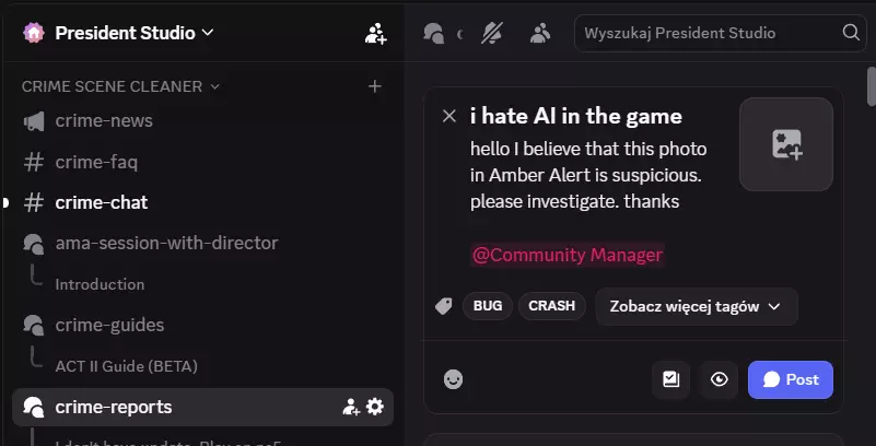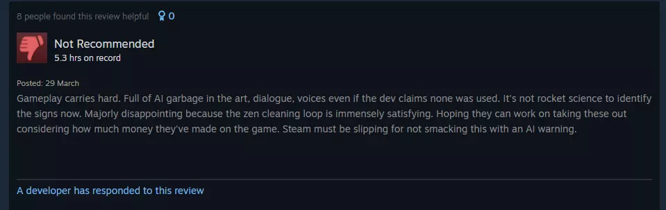 关于《犯罪现场清理员》中AI指控的说明