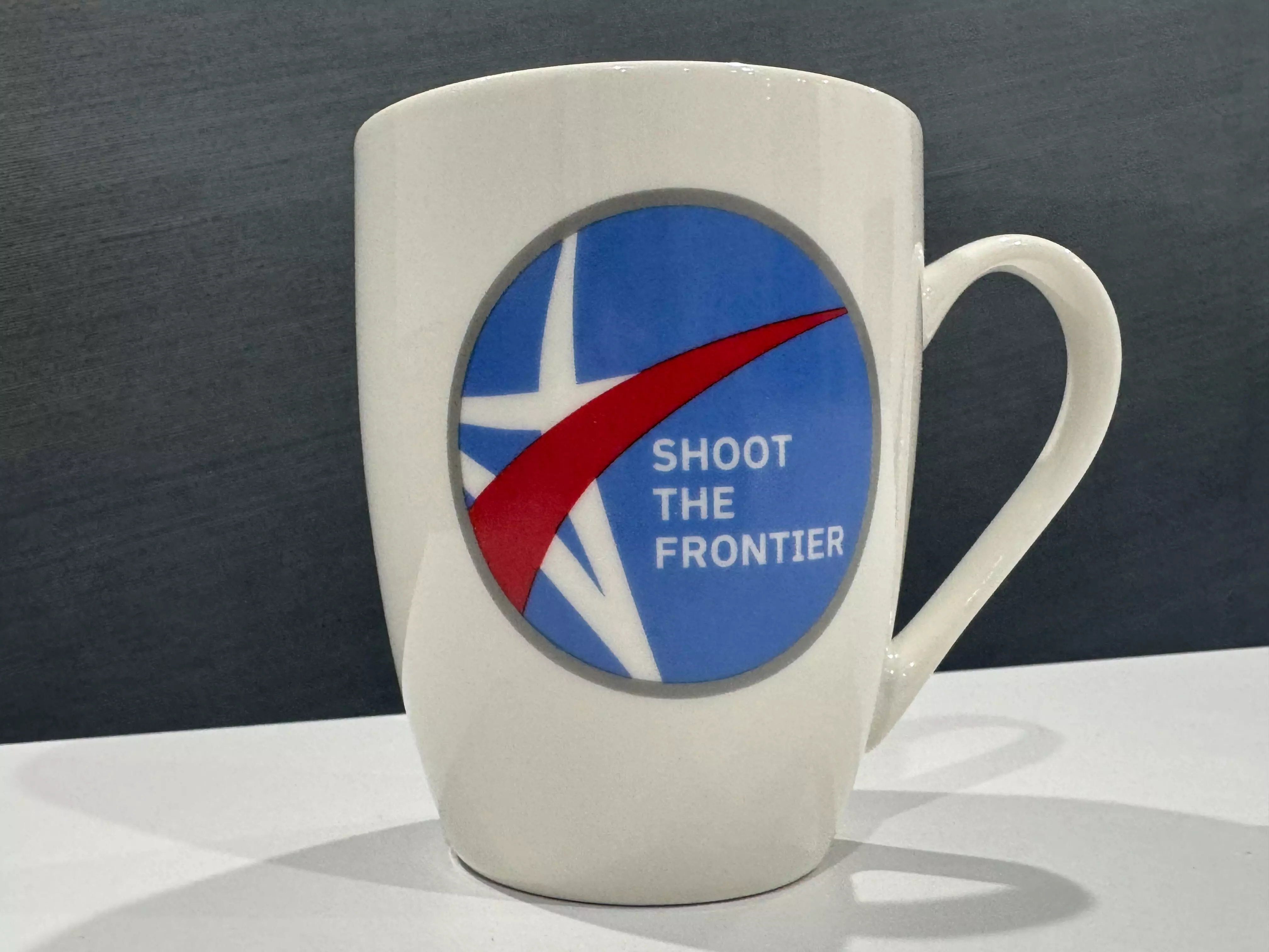 我们找到了一种定制形状,与游戏内模型高度匹配。我们甚至专门为马克杯重新设计了标志;虽然游戏内的标志是完美的圆形,但我们不得不将其重新绘制为椭圆形,以便在曲面杯身上呈现正确的效果(目前的照片尚未反映这一变化)。