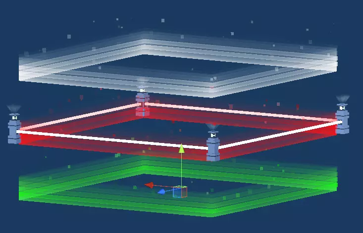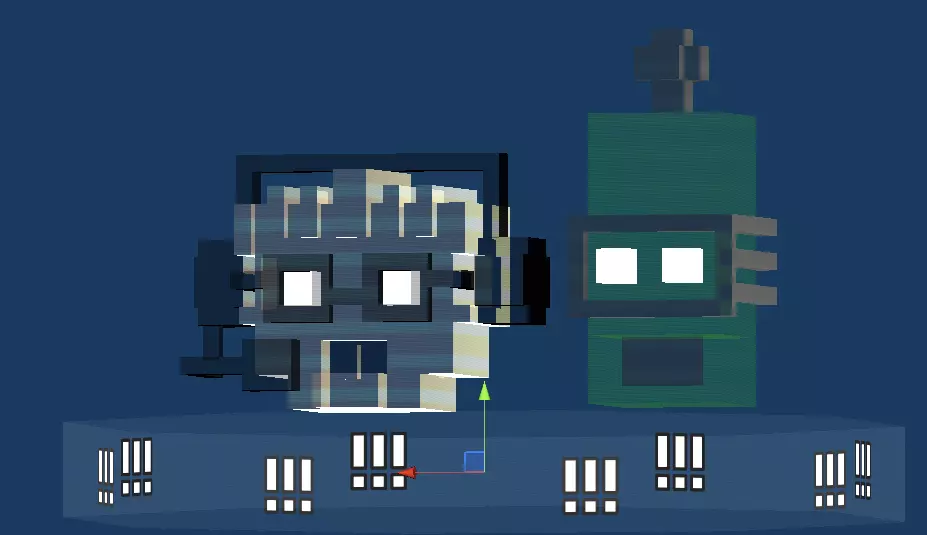 全息头像对新游戏模式来说非常重要。你们是如何制作它们的? 我们的目标是创建一个显眼的位置,吸引所有人前来战斗。全息解说头像会告诉你谁占据优势,同时也是一个易于识别的地标。 在动画方面,我们尝试加入了一些大笑、愤怒和混乱的表情。机器人本身缺乏表现力,而且在《克隆机器人》中,它们没有太多方式来展现情绪。这两个机器人都有不同的嘴巴,我们通常只在它们移动时对嘴巴进行动画处理,所以为了制作这些新头像,我们打破了它们原有的骨骼结构。我们以一种在其他情况下绝对看不到的方式移动头部,因为那样做会“折断”它们的脖子!正常情况下,脖子移动时头部会随之移动,因为它们是一个整体。但这次我们取消了这种关联。这为我的动画制作提供了更多自由。我让角色头部大幅摆动来展现各种情绪,因为这样看起来会很有趣。 制作全息效果的过程有些棘手。我们希望呈现出复古的扫描线效果,让它们看起来像是在显示器上显示的一样。这颇具挑战性,因为我们使用的是旧版本的Unity渲染管线。在更现代的管线中重现这种效果会更容易,但我们通过程序纹理添加了扫描线,而且这种方法对游戏世界中的所有物体都适用。