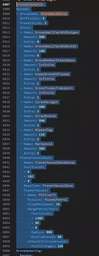 所有添加到测试场(默认随机经验值场景)以及默认随机(原版)场景的详细改动,均可在下方的更新日志中查看。 请注意:我们可能已发现早期/旧版默认随机场景的部分存档存在潜在问题。这些存档可能因出现错误而无法启动。针对此类情况,我们提供了一个解决方法,具体步骤将在下方的“操作指南”部分说明。 如果此方法有效,请告知我们。同时,如往常一样,任何其他反馈也可直接在实验性BUG与反馈论坛中提出。 祝您测试愉快!《帝国霸业:银河生存》存档启动错误解决方法 描述:在默认单人模式下,由于游戏区域存在问题,可能导致无法登录存档。我们已提供修复方法,只需几个简单步骤即可恢复存档正常运行。 1. 前往游戏安装目录,找到存档位置(默认路径为../Steam/SteamApps/Common/Empyrion - Galactic Survival/Saves/Games/<你的存档名称>)。 2. 从存档文件夹进入Templates目录。 3. 找到名为Cuplasyr I的文件夹。 4. 打开该文件夹中的Playfield.yaml文件,搜索“DroneBaseSetup: false”。 5. 删除这一行内容,仅删除此行。因为DroneBaseSetup: false在playfield.yaml文件中不是有效选项。 6. 删除后保存Playfield.yaml文件。从Templates目录下所有文件夹中找到bin文件,你可以在搜索栏中搜索.bin来实现。这可能需要一点时间,只需从搜索结果中全选它们并按删除键即可。 下一步是使用如Notepad++之类的程序打开所有Playfield.yaml文件。你可以通过将Templates文件夹拖到Notepad++窗口来完成。在所有文件中搜索“PlanetType: Temperate”。 在找到的文件中搜索DroneBaseSetup数据,并将该条目替换为“DroneBaseSetup: {}”。 操作步骤如图所示。