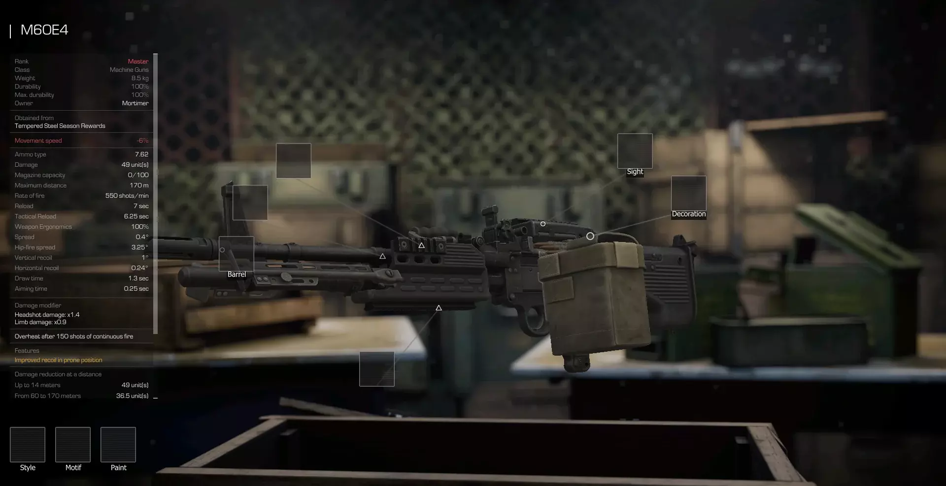 由于以物易物分支中武器位置发生变更,已进行以下替换与补偿: 物品移除 - 物品发放 BM-16 - TOZ-34 短管 TOZ-34 - BM-16 МР-133 - BM-16 МР-153 - МР-133 Saiga-12K - МР-133 Saiga-12K 护木 - 回收物品并全额补偿所消耗资源 MP-133/MP-153 弹匣扩展器 - 回收物品并全额补偿所消耗资源 受影响霰弹枪的特性变更: BM-16 短管 -TOZ-34 Sawed-Off 伤害:128 → 116 最低伤害:44.8 → 52.2 最大伤害距离:9 → 4 最小伤害距离:58 → 30 射速:240 → 150 腰射散布:2.25° → 2.75° 肢体伤害:0.8 → 0.9 爆头伤害:1.25 → 1 瞄准时间:0.2秒 → 0.15秒 BM-16 等级:Picklock → 新手 伤害:108 → 148 最低伤害:37.8 → 66.6 射速:240 → 150 肢体伤害:1 → 0.9 TOZ-34 等级:新手 → 潜行者 伤害:128 → 181 最低伤害:44.8 → 81.5 射速:240 → 150 肢体伤害:1 → 0.Gramps TOZ 伤害:188 → 198 最低伤害:65.8 → 89.1 射速:240 → 150 肢体伤害倍率:1 → 0.9 МР-133 等级需求:新手 → 老手 伤害:132 → 198 最低伤害:46.2 → 93 最低伤害距离:58 → 56 射速:70 → 60 肢体伤害倍率:1 → 0.9 扩容弹匣现已默认内置 МР-153 等级需求:潜行者 → 老手 伤害:155 → 219.1 最低伤害:46.6 → 109.5 射速:110 → 100 肢体伤害倍率:1 → 0.9 扩容弹匣现已默认内置 Saiga-12K 伤害:100 → 119 最低伤害:30 → 35.7 护手现已默认内置 仓库重做 仓库机制已重做。交互 安装后可立即与更新后的储物箱进行交互,拿起和放下物品无需确认。