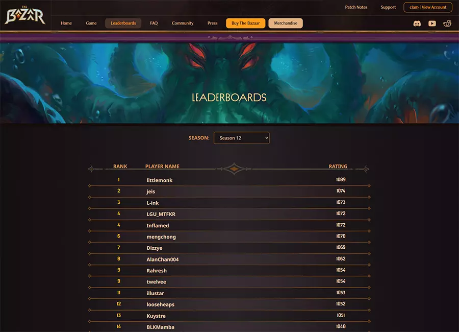 排行榜 我们知道许多玩家对《The Bazaar》的竞技元素很感兴趣,并且一直在开发各种功能来支持这一方面。 到目前为止,我们已添加了排行榜功能,并与社区合作以支持游戏的竞技玩法。 我们很快将扩展排行榜的功能,同时也在开发其他能让玩家在游戏中更直接地相互竞争的方式。