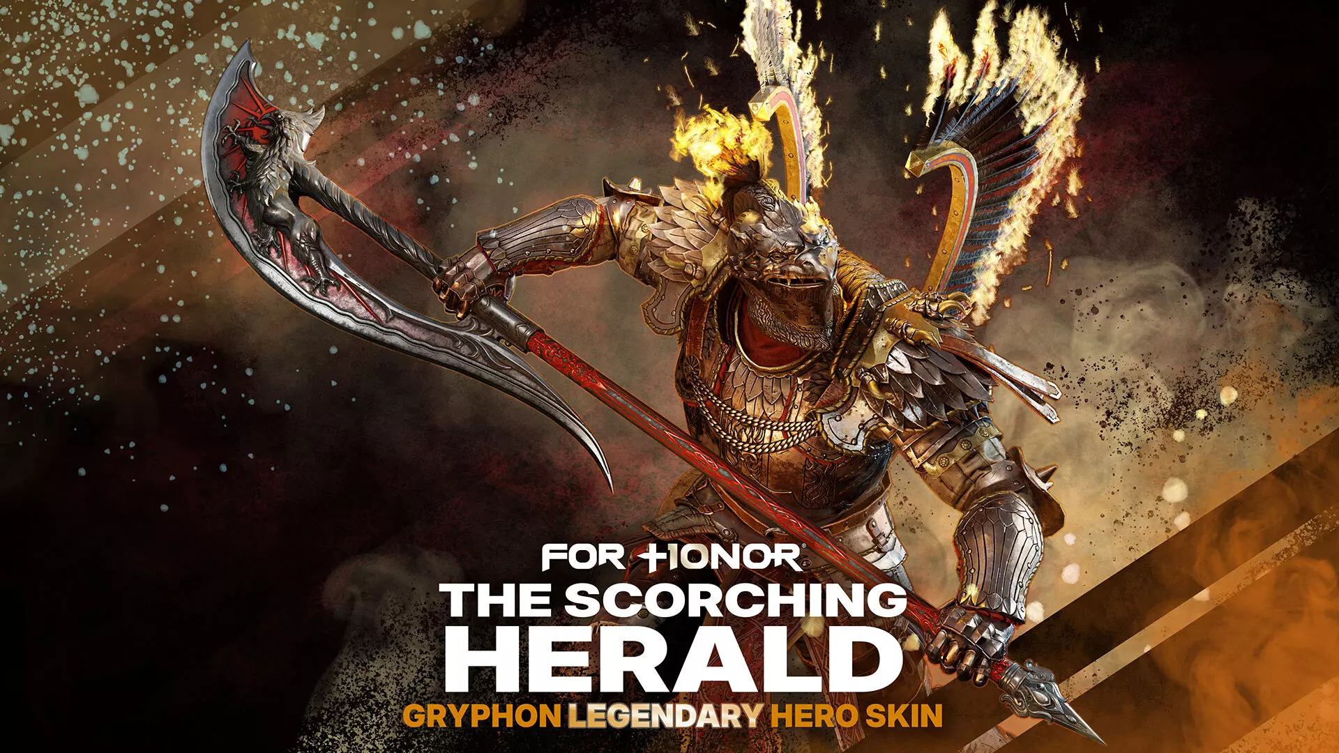 新传奇英雄皮肤:炙焰使者 希思莫尔正处于古尔金及其卡屯们所施加的令人窒息的和平之下。多数人选择屈服,但狮鹫却在隐忍。由于无法公开反抗,他化身为炙焰使者,身披火焰狮鹫造型的盔甲,这副战甲旨在激发他真正的潜能。通过讲述传奇战役的宏大故事,他重新点燃了人们对荣耀的渴望,并再次启动了战争的轮回。 这款传奇皮肤包含重新制作的语音,以及前所未有的永久性视觉特效,使其在游戏中显得强大、独特且引人注目。为庆祝《荣耀战魂》在皮肤实现方面迈出的这一步,现推出【狮鹫传说】捆绑包,其中包含英雄狮鹫、灼热使者皮肤、14天冠军状态以及6个 scavenger crates。狮鹫将从3月12日开始,在英雄试炼活动中免费游玩一整周。