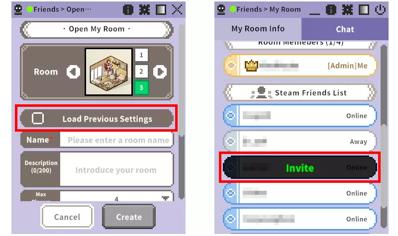 - 若邀请未运行《迷你温馨小屋:低保真》的玩家,将通过Steam消息发送启动游戏的链接。