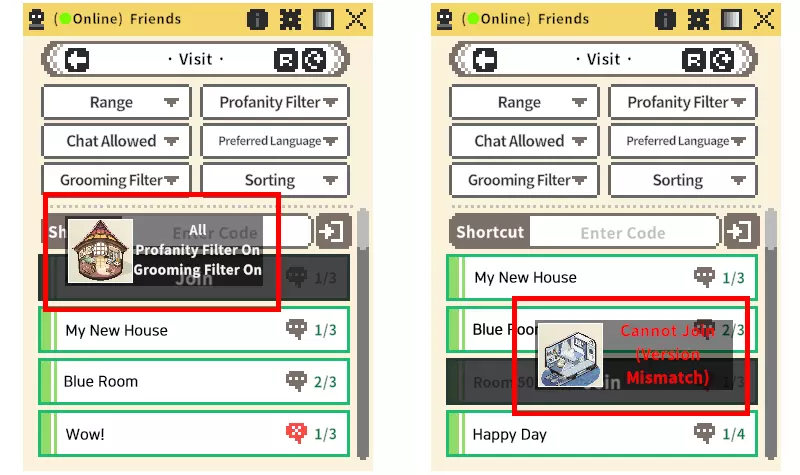 -若因版本不匹配导致无法加入房间,将显示加入限制提示信息。