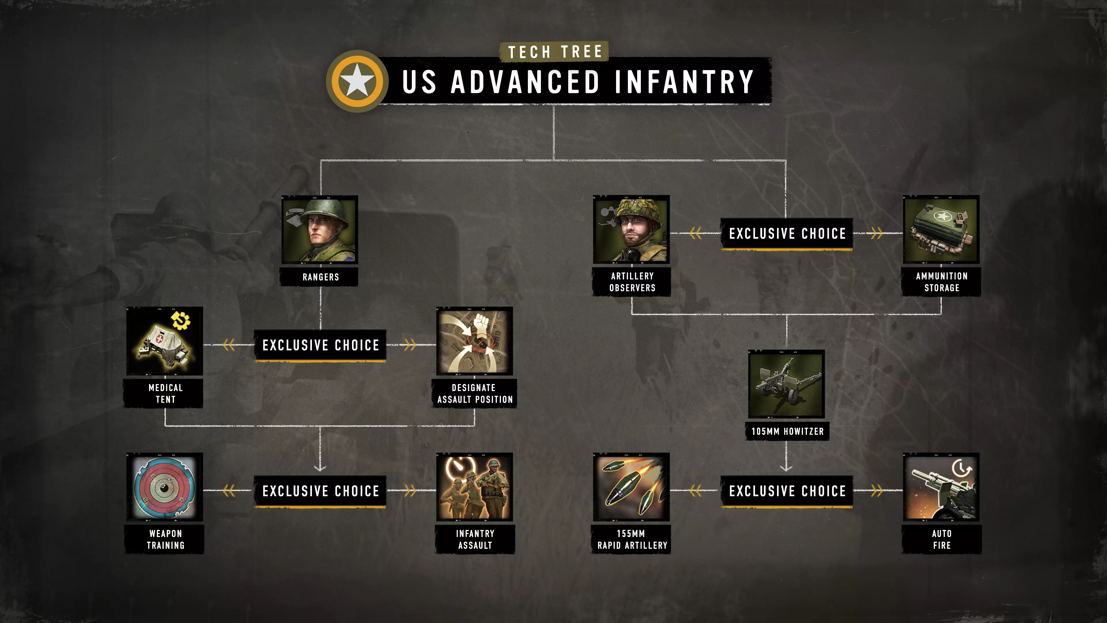 组建一支高度先进且经验丰富的部队,旨在通过机动战术压制对手。 由指挥型8轮装甲车引领的老练步兵与载具,结合王牌斯图卡空中支援以及虎式王牌重型坦克,可实现战场上的决定性优势。 敬请期待更多信息!