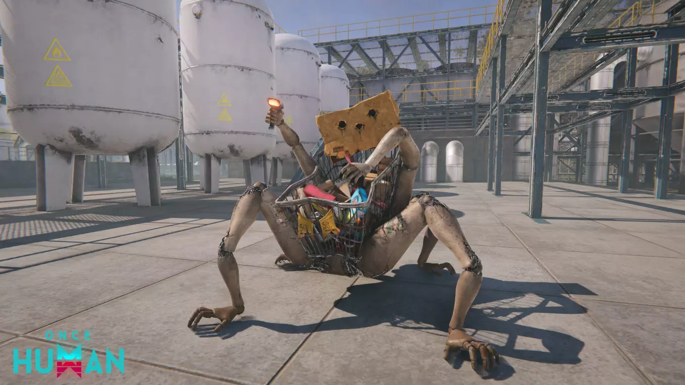 外观 其主体是一个仰卧的多肢体人体模型,胸部永久嵌入一个购物车。购物车手柄上挂着一个画有“笑脸”的纸袋,类似面部特征。 行为 它保留了变异前的囤积癖:一只手挥舞扫描仪定期扫描环境,另一只手将丢弃的物品收集到购物车中。它还会捡起元变异者掉落的物品。在此期间,其扫描仪发出蓝光,无攻击性。 观察表明,囤积者以3-5只为一组在共享“巢穴”活动,它们在那里囤积收集到的物品,包括稀有物品。如果你在巢穴附近被发现,它们的扫描仪会变黄以示警告。