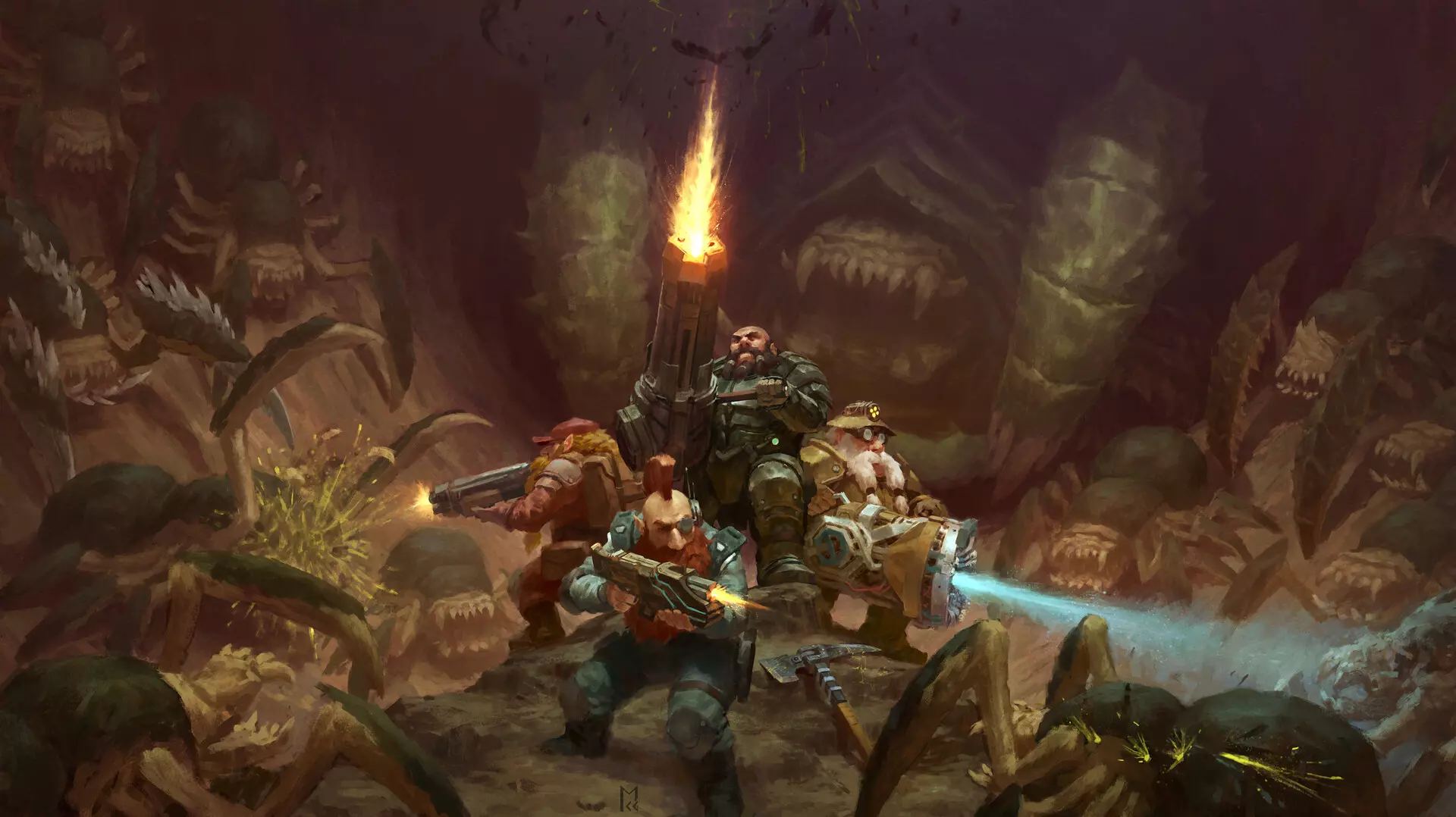 玩《深岩银河》时,你肯定不止一次听到有人提到某个叫卡尔的家伙,但他到底是谁?为什么矮人们总是频繁提起他、以他为榜样、尊敬他,还会在挥动鹤嘴锄砸碎下一个异虫的脑袋时大喊“为了卡尔!”呢? 附:这个故事是根据游戏中矮人们的台词、网上的各种理论以及我个人的推测编写而成,希望你阅读愉快。 温馨提示:建议配合《深岩银河》原声带——《献给 fallen 的颂歌》来阅读。前言 霍克斯IV是一颗围绕蓝色恒星克劳斯旋转的极度危险且充满敌意的星球。它拥有丰富的各类资源,而只有“深岩银河”开采公司仍在该区域进行开采作业,并为所有有足够勇气深入霍克斯IV地底的人提供丰厚报酬。无数矮人为了赚点酒钱和淘个新奇时髦的帽子,冒着生命健康危险深入这颗星球的地底。 他们的付出似乎并不明智,谁会为了一顶帽子去冒这种险呢?难道矮人们真的意识不到自己终有一死,难道他们就不害怕吗?当然,他们心里清楚,也感到害怕,但尽管如此,他们彼此信任,知道对方不会在危难中抛弃自己,也知道战友们会并肩作战,直到最后一颗子弹,直到为自己和团队的生命拼尽最后一口气。