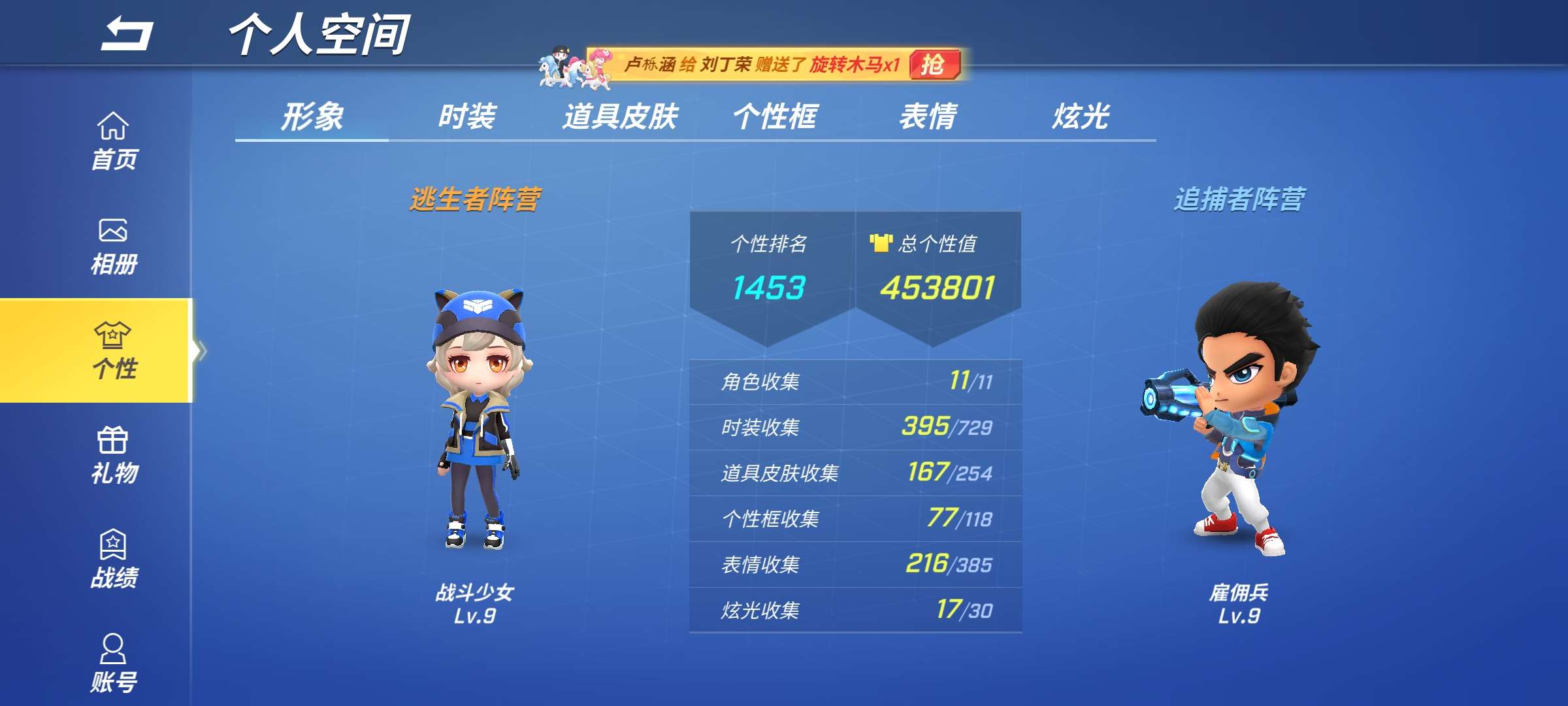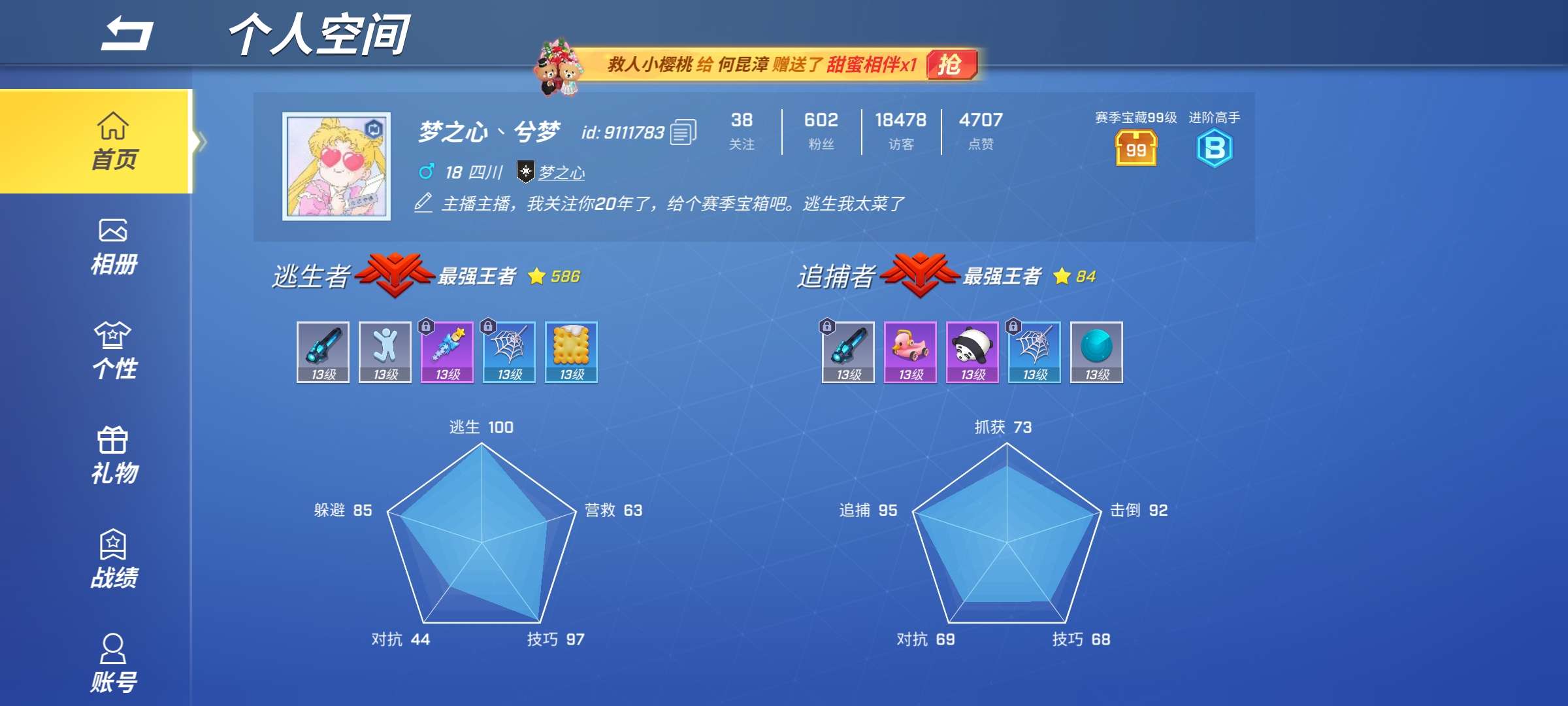 7ID老玩家了,道具卡全13,全赛季皮肤,玩着没有动力了。