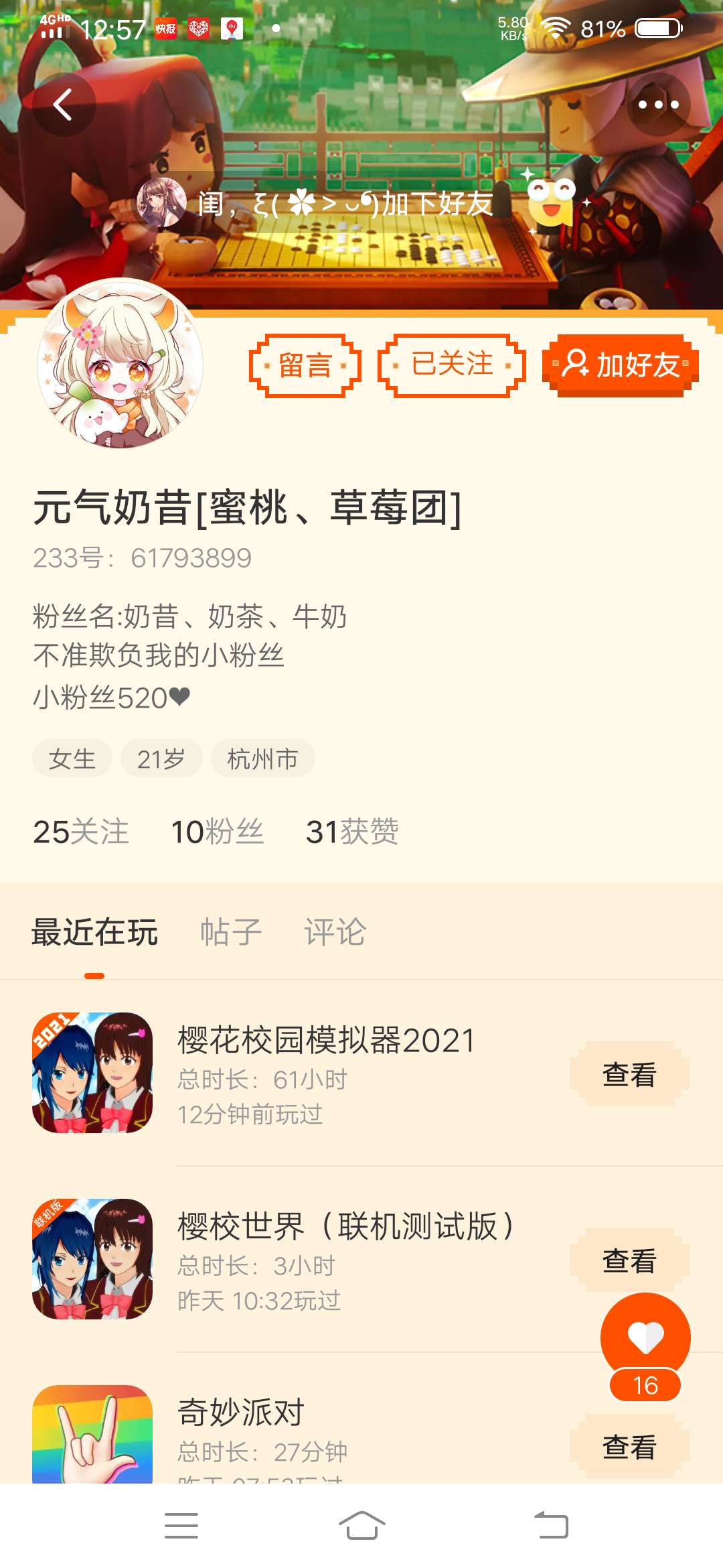 哇,是个大佬诶 ,没想到他会来我的帖子,哇塞,好阳光的小女孩 ,漂亮, 99分