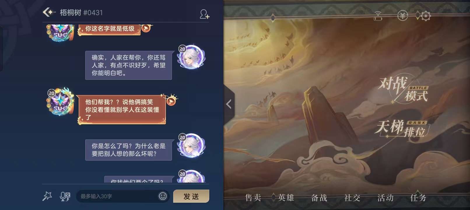 下面是朋友和他的对话,玩张出尘1-3,救了他两次,帮他说队友在送人头,还有一些没法说…真没游戏体验了