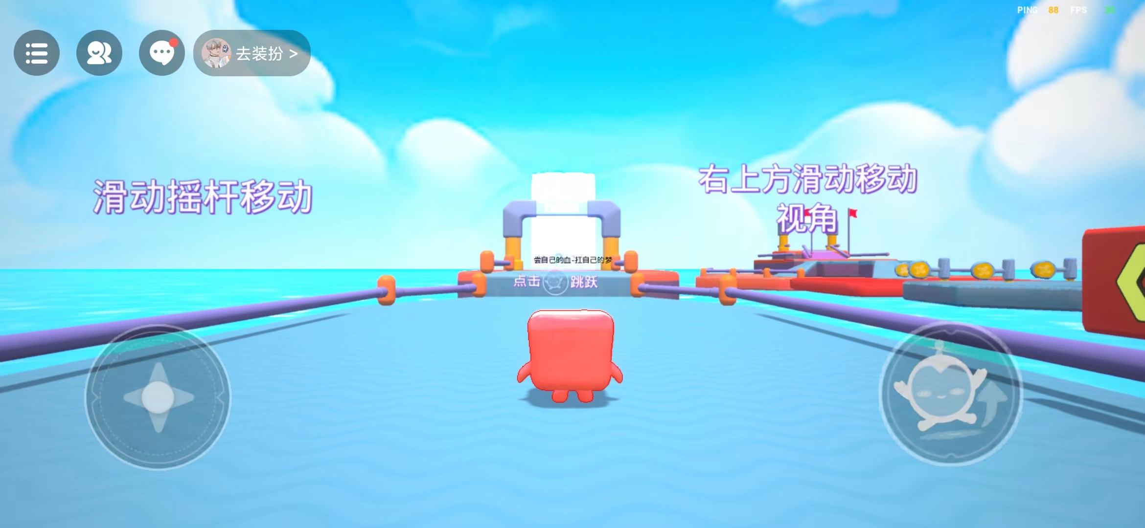 继续跟着文字操作,需要注意的是,我们不能掉到海里,要不然就会从上一个跳跃的位置重新开始