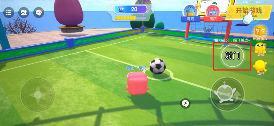 还记得大厅里有个足球场嘛,现在进入足球场右侧会出现射门按钮