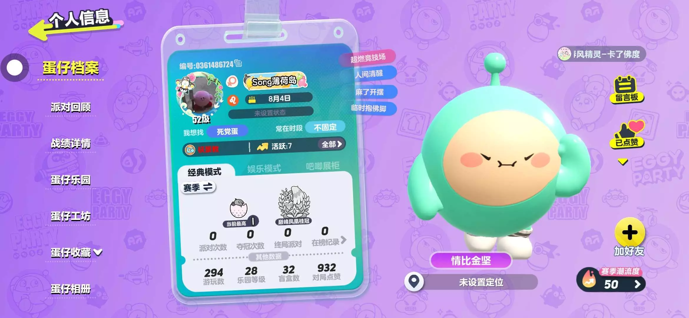 手机格式化后重新下载了233然后下了的蛋仔,登录的也是我现在这个号(第一张这个蛋仔号就是现在这个233号里下的)