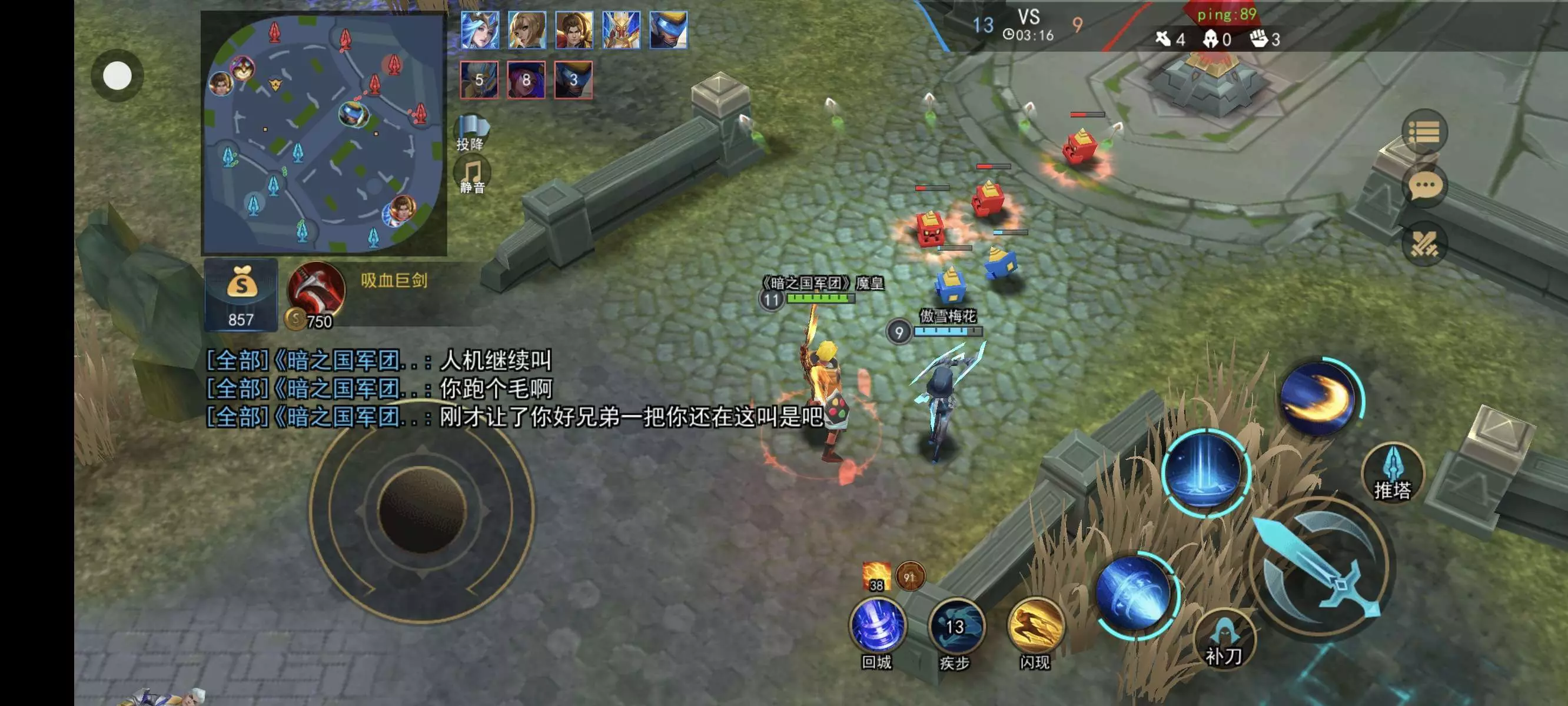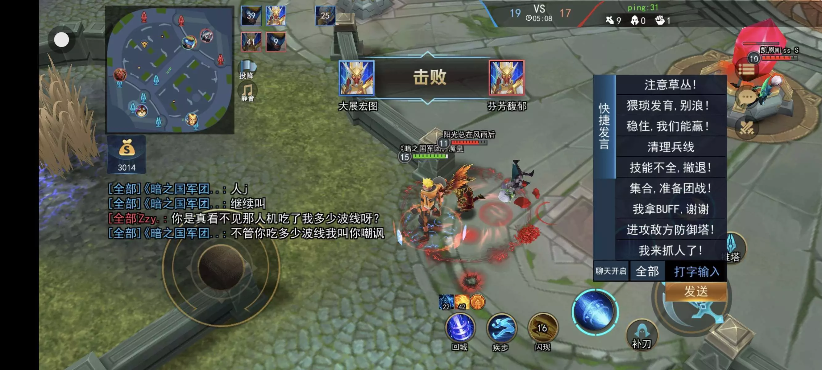 明明自己没实力,要拉装车 ,稍微稳一下就打不过,让你嚣张上,本来想友好跟你切磋上来就没大没小,直接嘲讽,你赢的那点尽管发自己心里没点数吗?1打1打不过,还要我让你,死了两次,直接搞我,呵呵