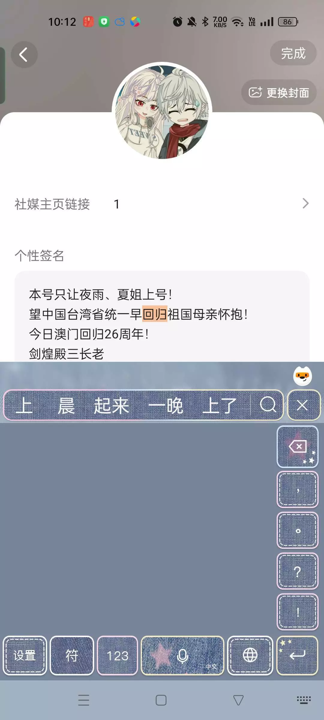 本号只让夜雨、夏姐上号 望中国台湾省统一早回归祖国母亲怀抱中! 铭记历史,勿忘国耻! 大好河山统一!