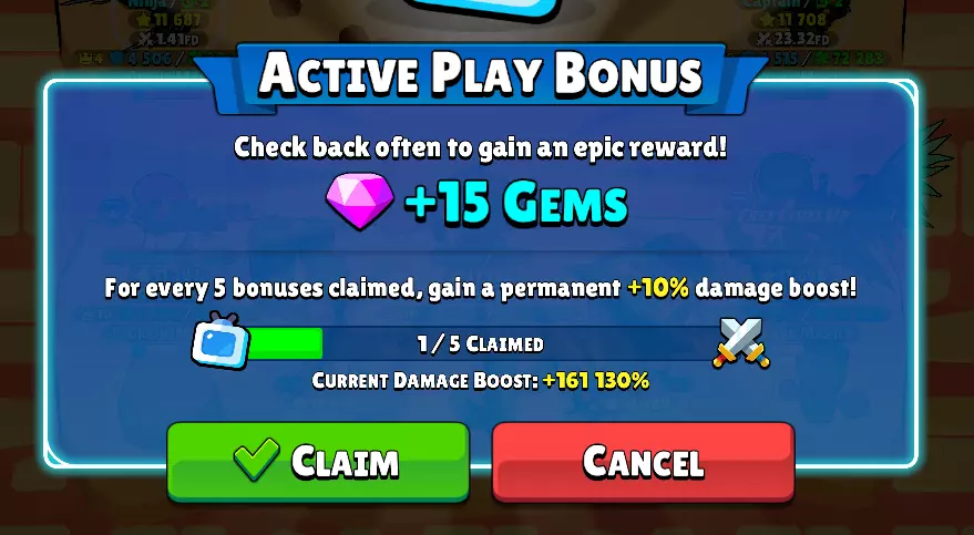 允许你领取15颗宝石(最高等级升级时)