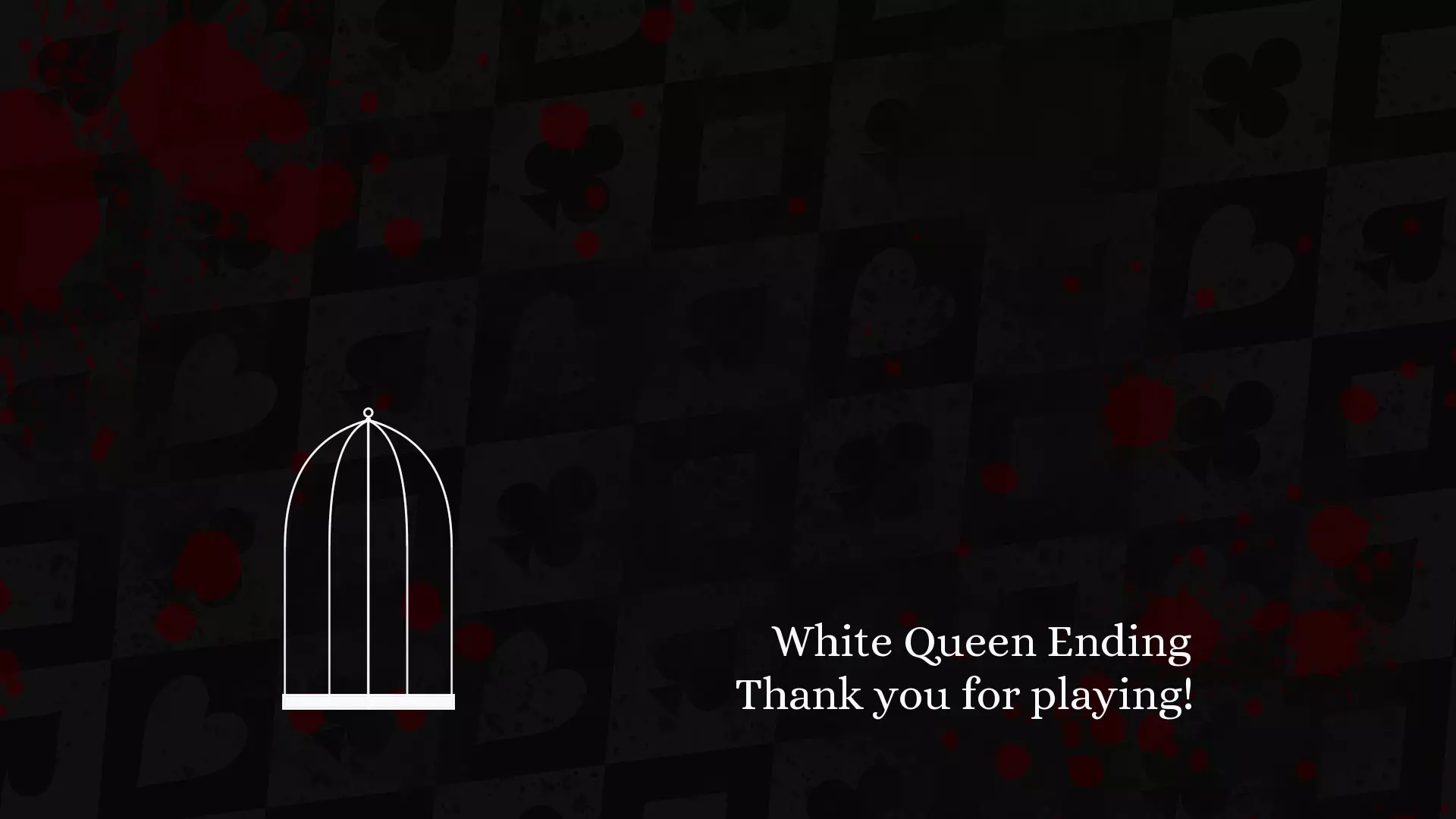 开启图像描述功能,你不会后悔的。而且图像描述是用草书写的。 我尝试选择每个选项,以涵盖尽可能多的剧本内容,并使其与路线尽可能契合。 从技术上讲,在红桃皇后路线中,通过最后一个选择你仍然可以达成爱丽丝结局,不过按照我设计的攻略流程,你会看到更多的剧本内容,并且在游玩每条路线时都有机会体验所有的死胡同。 白皇后结局