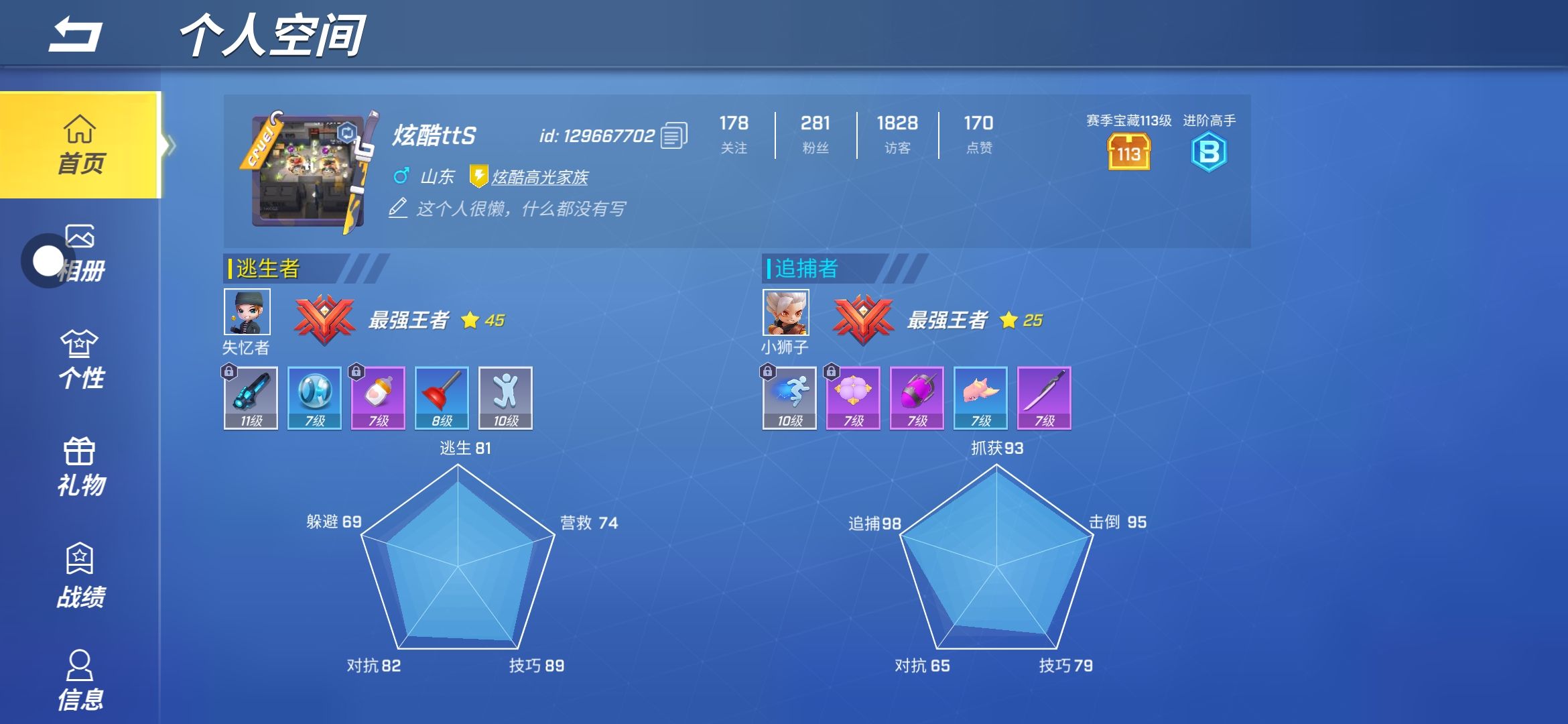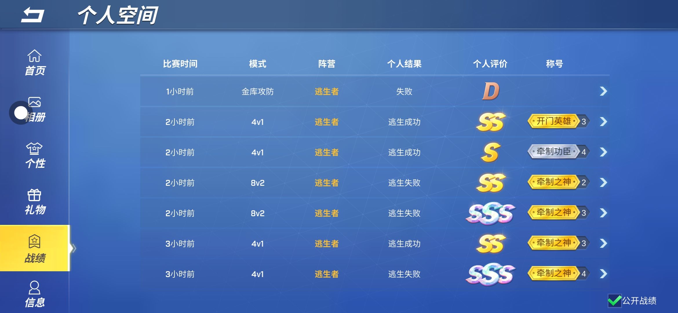 你们谁愿意跟我玩儿,我逃生是40星追捕21星