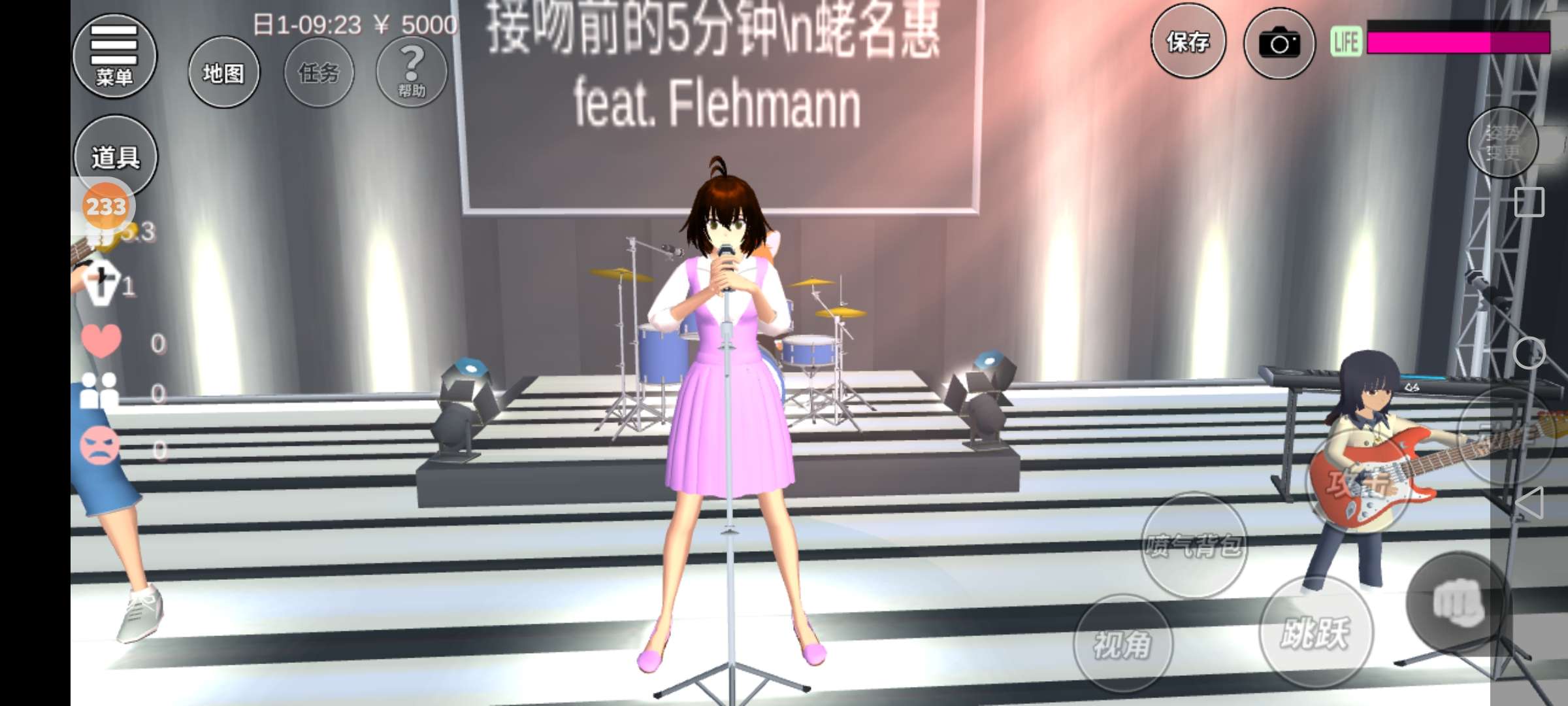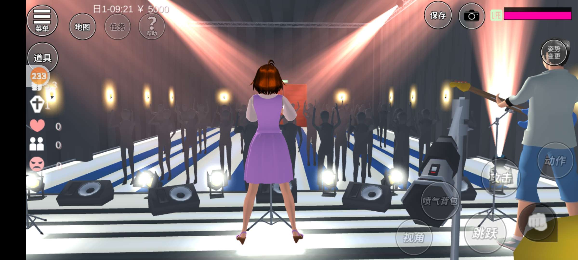 在向日葵组那边别墅一直向右手边走就会有一个蓝圈圈,蓝圈圈里边就有那个舞台