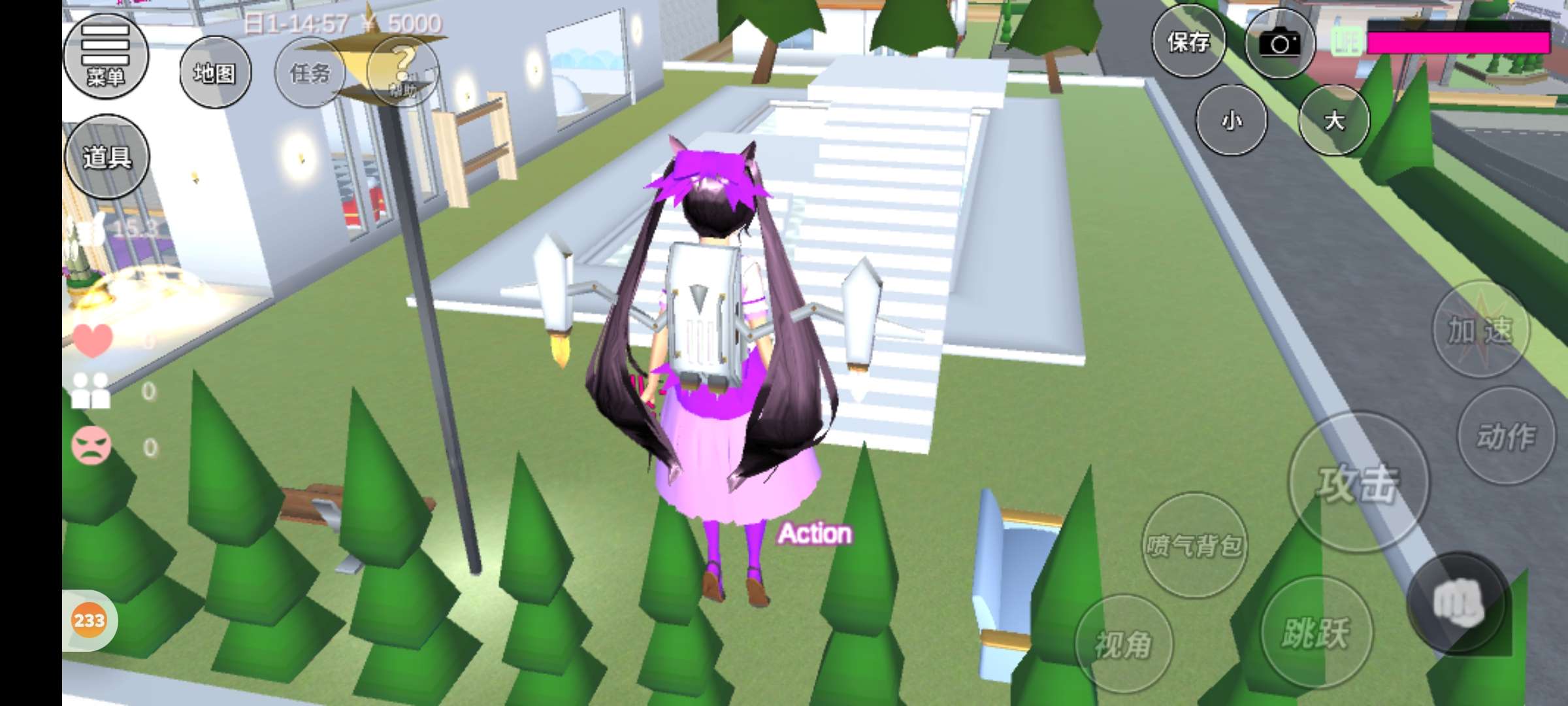 看到楼梯了么,走上去,楼顶上有个很简单的跑酷