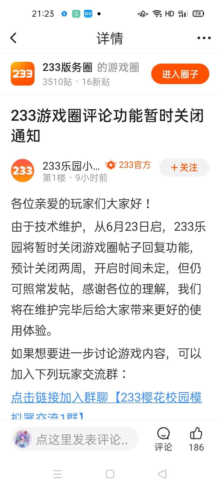 游戏圈评论回复功能关闭