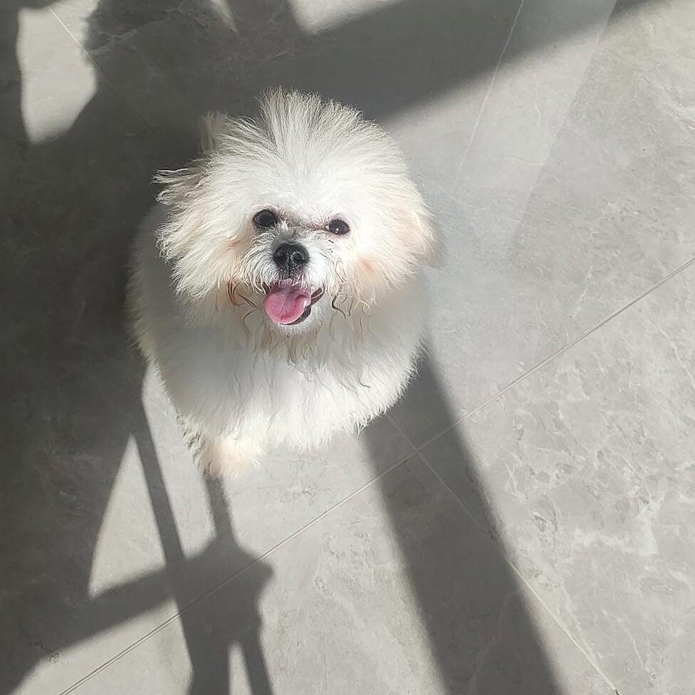 我是女的 我养了一只很可爱的小比熊 名字叫薯条