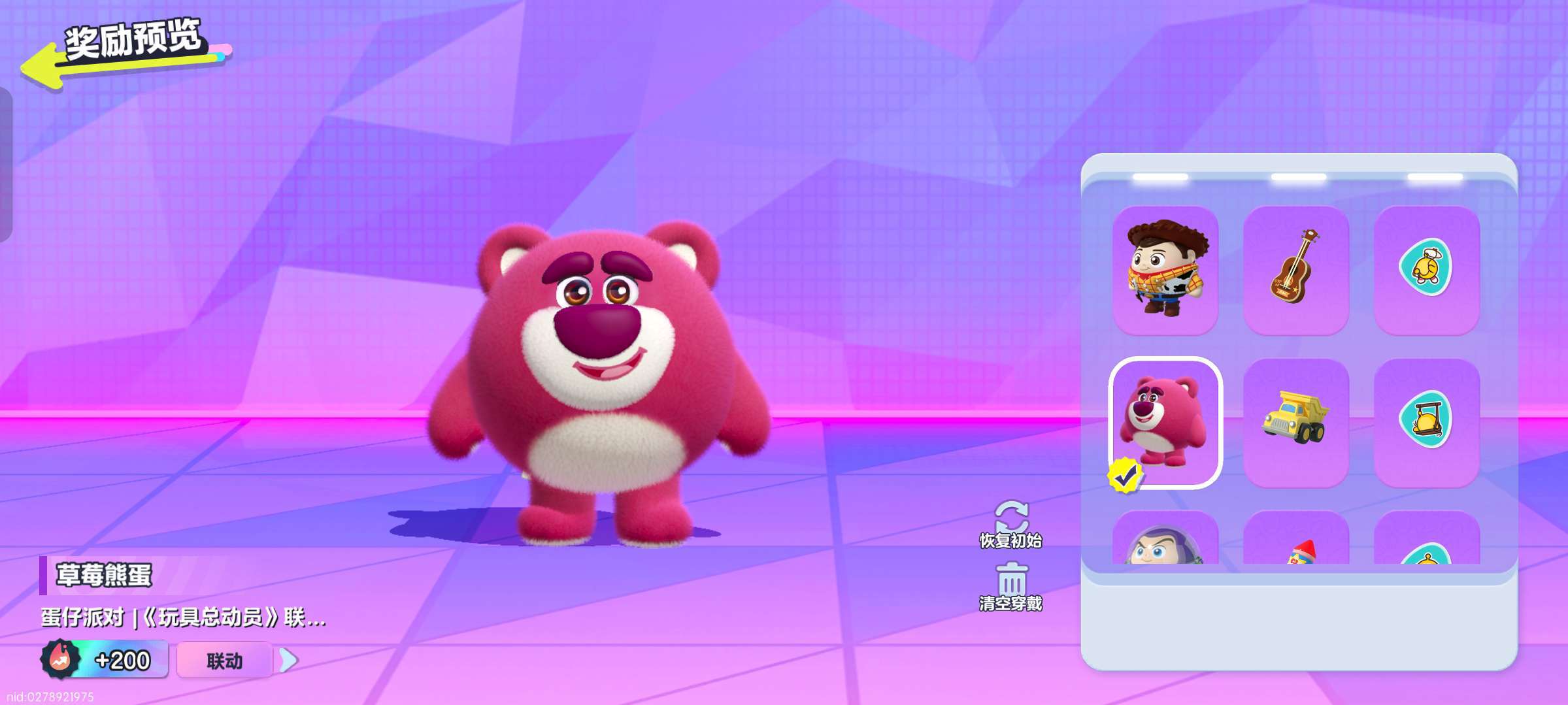 #玩具总动员 本次联动的是玩具总动员,其中有不少我看过的人物,网易本次联动的皮肤有胡迪,巴斯光年,草莓熊,我最喜欢的是草莓熊🍓啦。