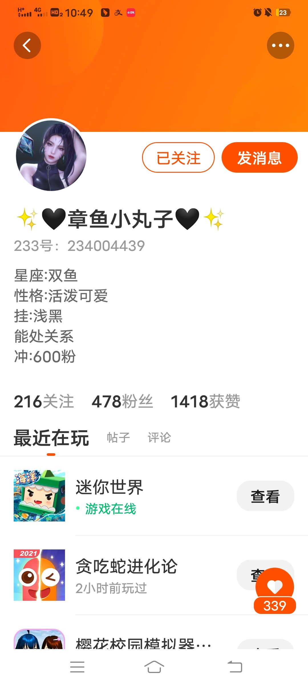 请问有人处闺吗?我一个人玩游戏太孤单了😞😞😞