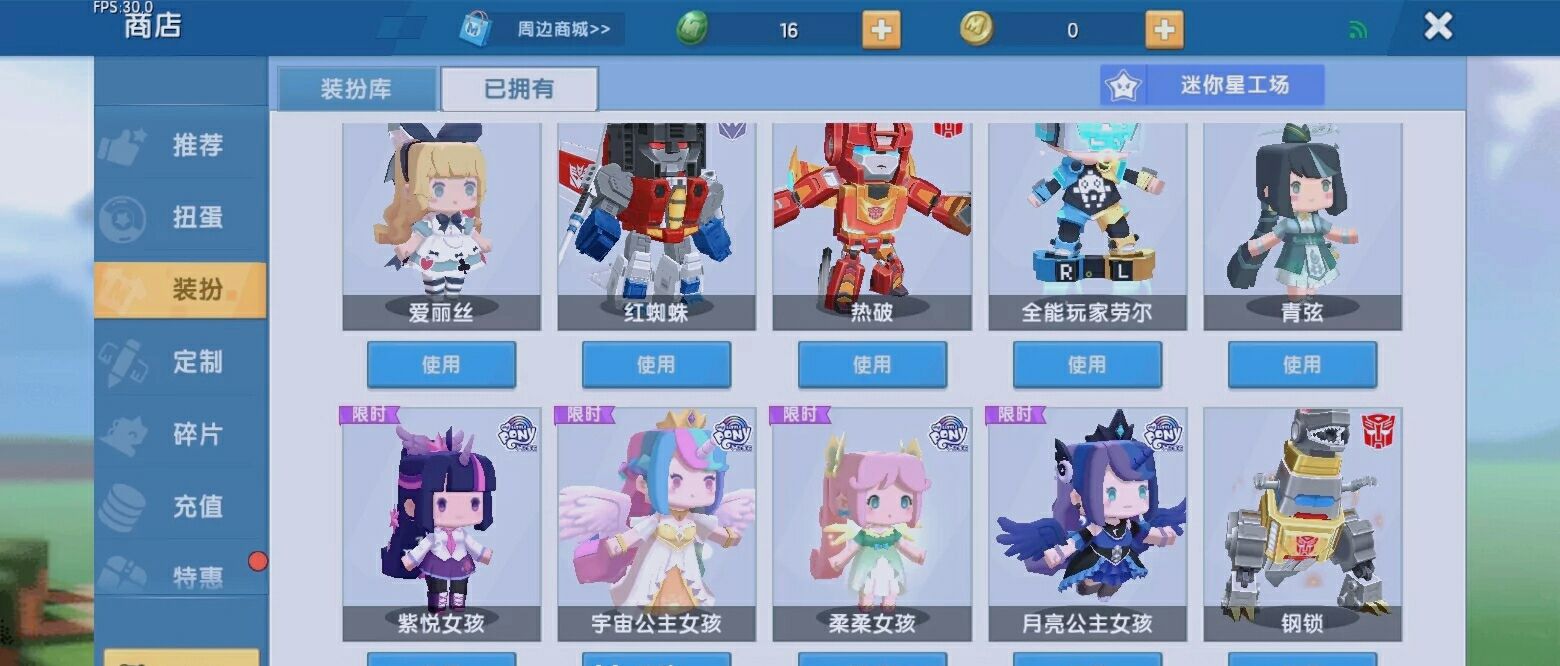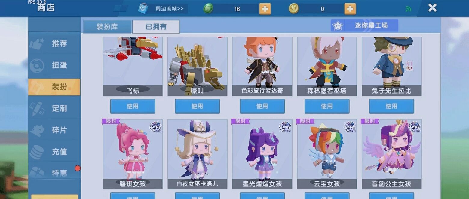 皮肤:小马宝利、月无双、等