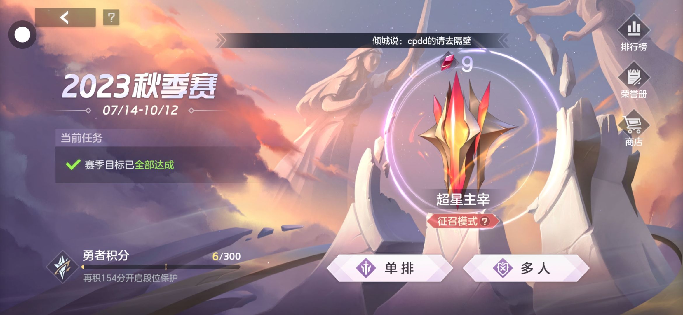 小号已经上超星主宰九星了