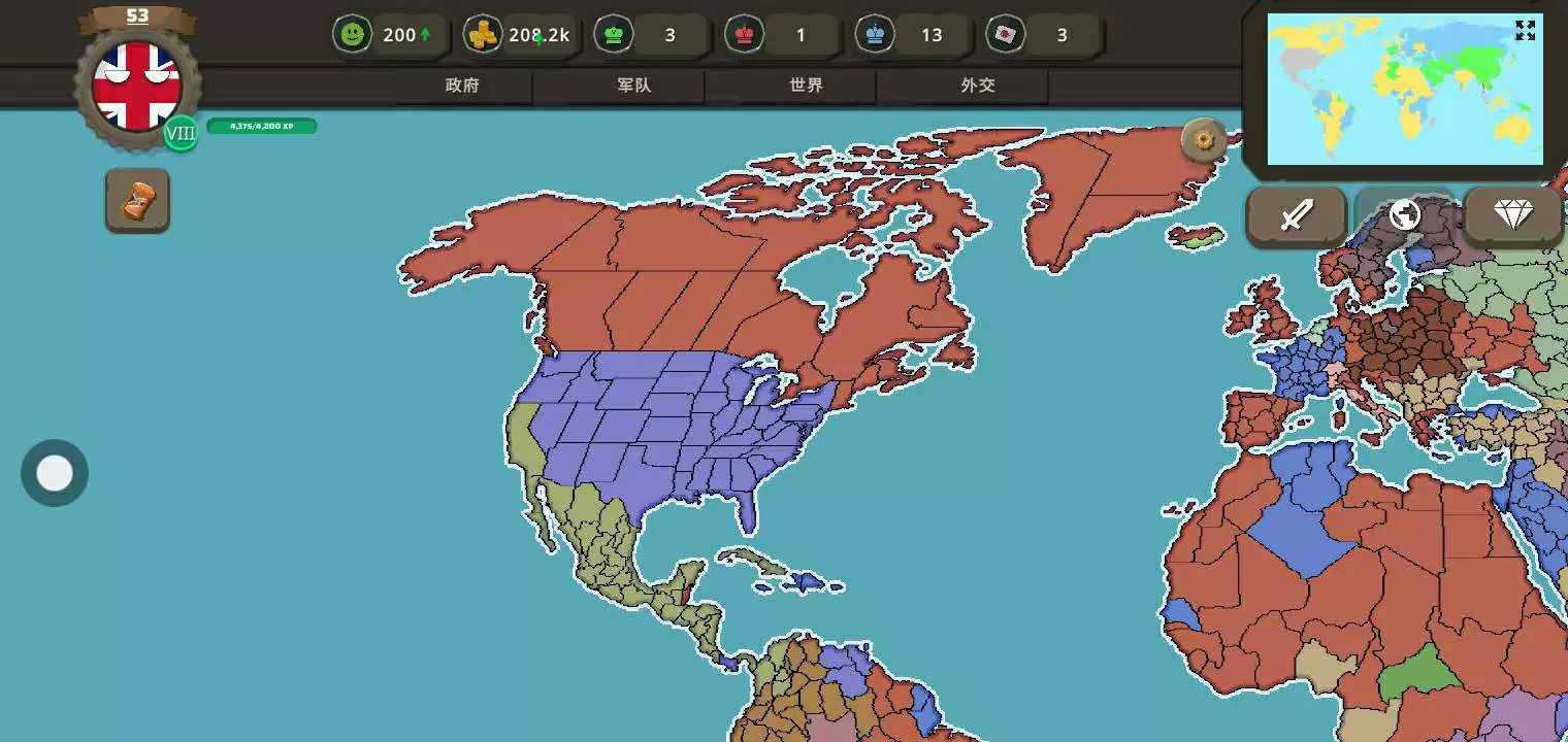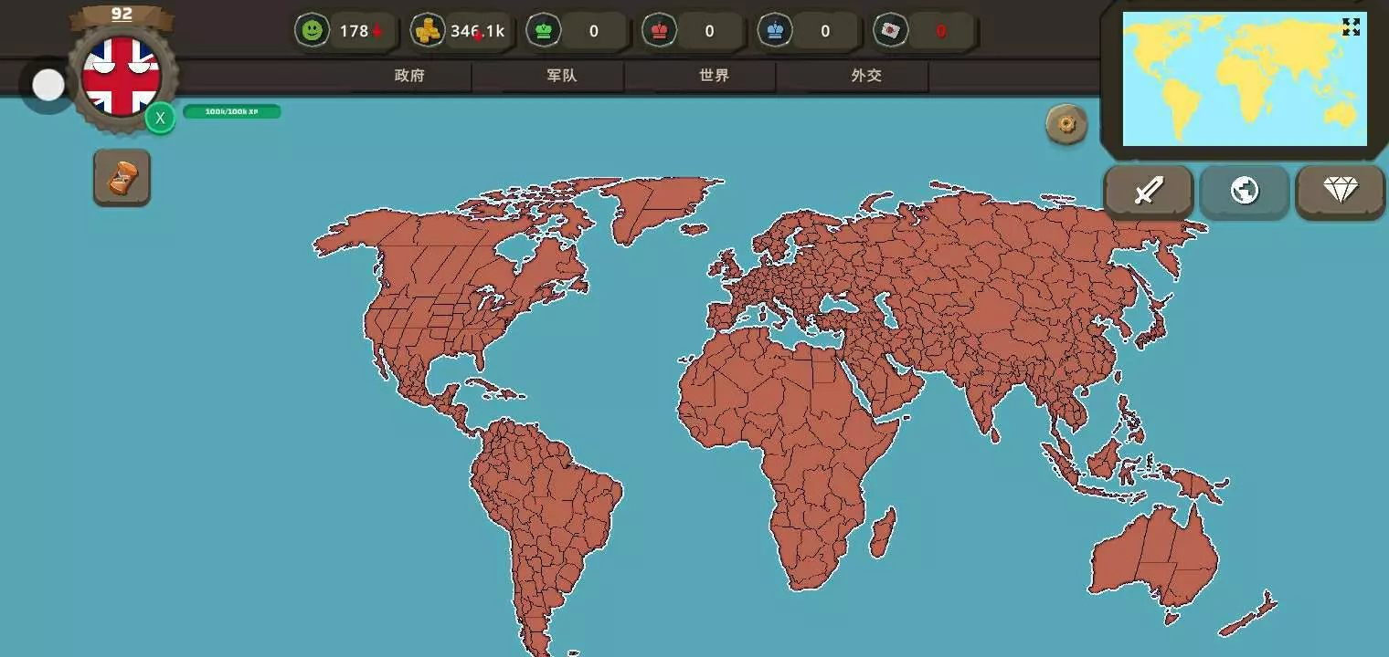玩儿这个。非常简单,找好盟友。让盟友参战。自己偷偷升级部队,养部队。然后击穿其他最后背刺即可统一全球。
