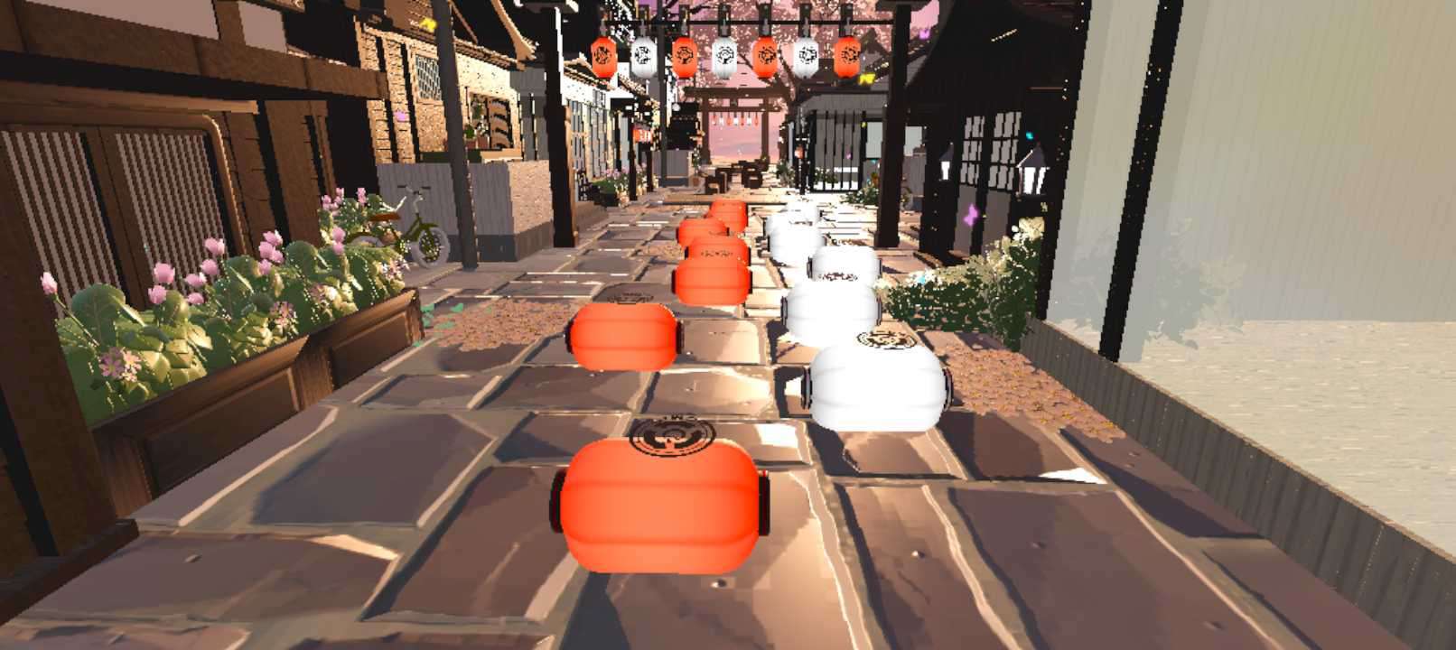进入地图,就是一段小跑酷,难度较小,过不去的可以让蛋搭子抱着过哦,作者为了让意境更突出,把灯笼的颜色也改的很符合主题,虽然这不是最重要的地点,但是作者也是很用心的对待🌻,颜色搭配也很有古典意味啊✏