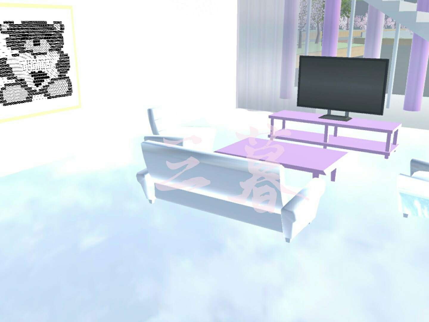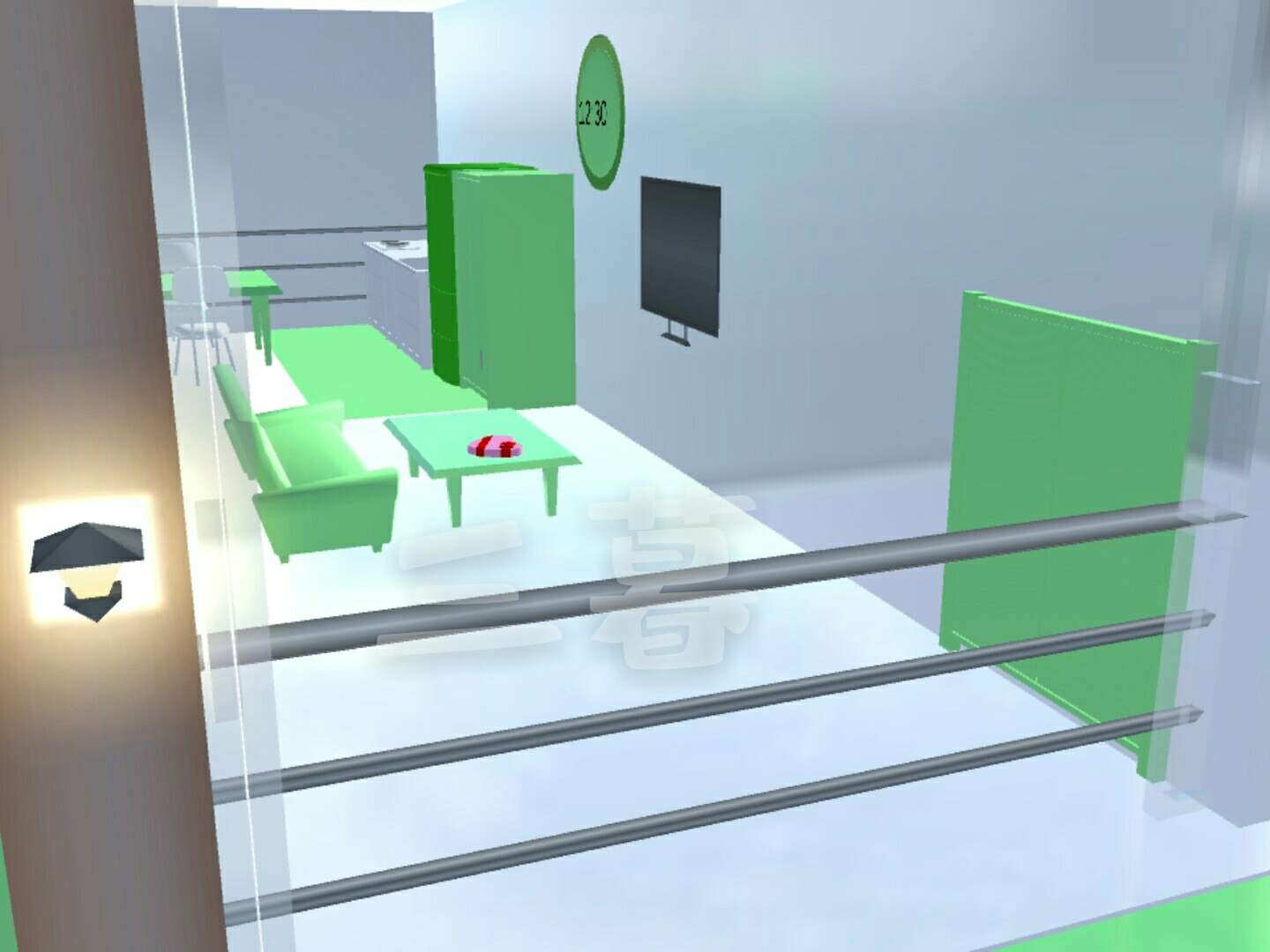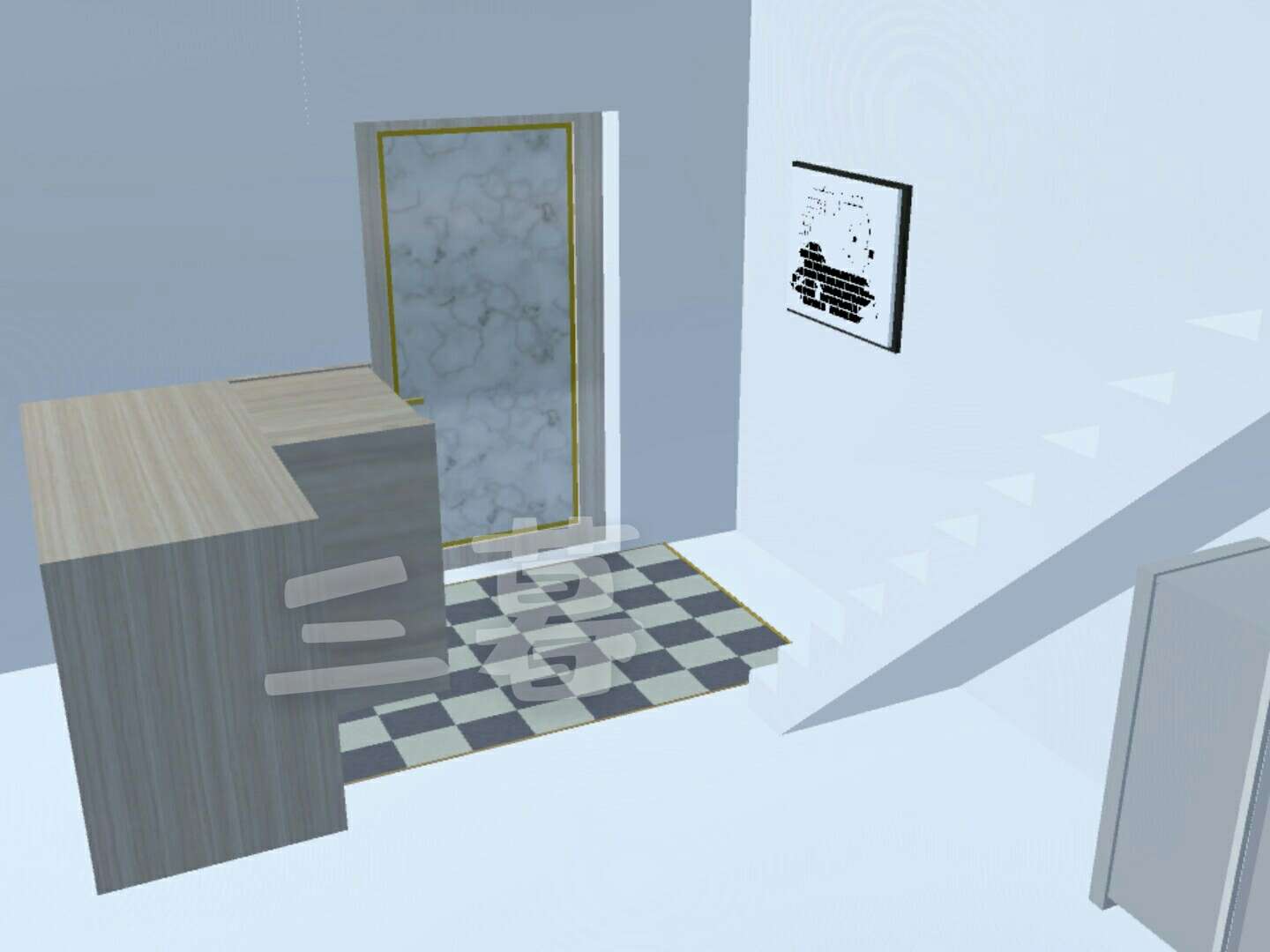 这边墙上是一个壁画,还有灰色系时钟(因为我怕黑色不是很显眼)