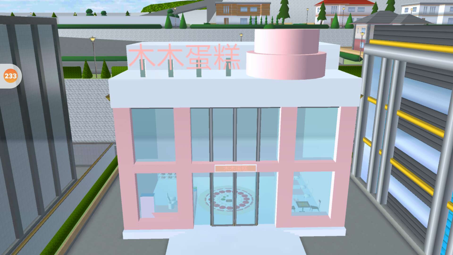 门口两边还有两盆盆栽哦,两边还贴着“开业大吉”
