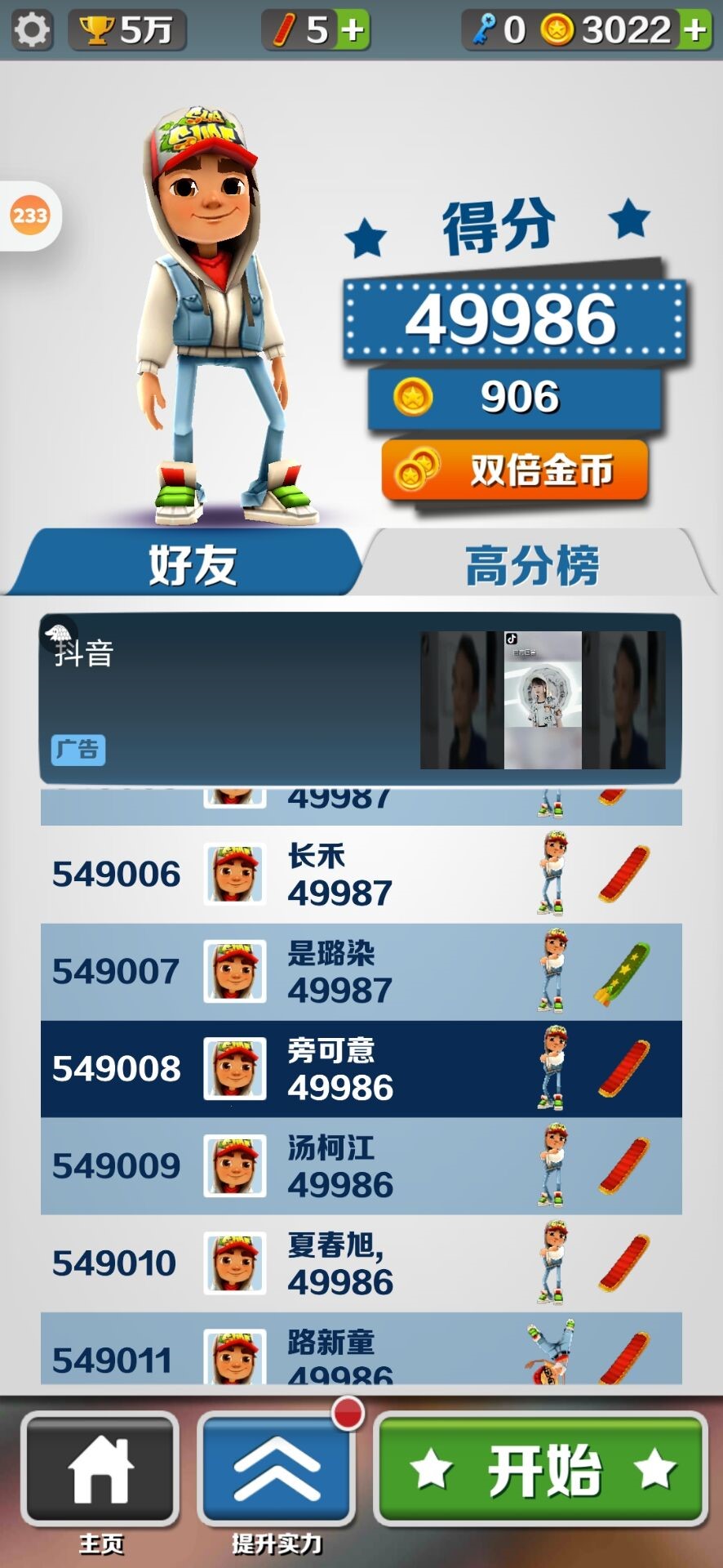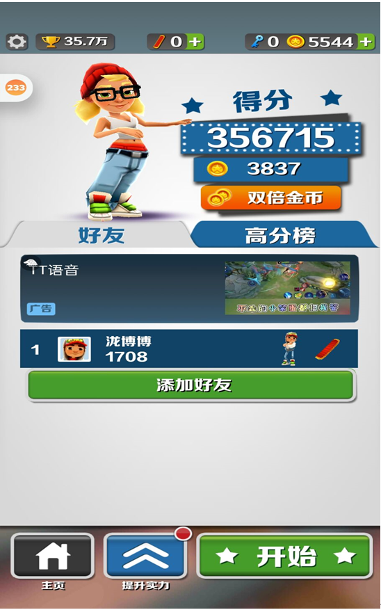 第二个需要注意的点便是游戏道具了,游戏道具可以帮助我们在更短的时间内获得更高的分数,想要得到高分的小伙伴,这里强烈推荐双倍得分道具。我们可以优先升级双倍得分,可以延长它的道具时间。