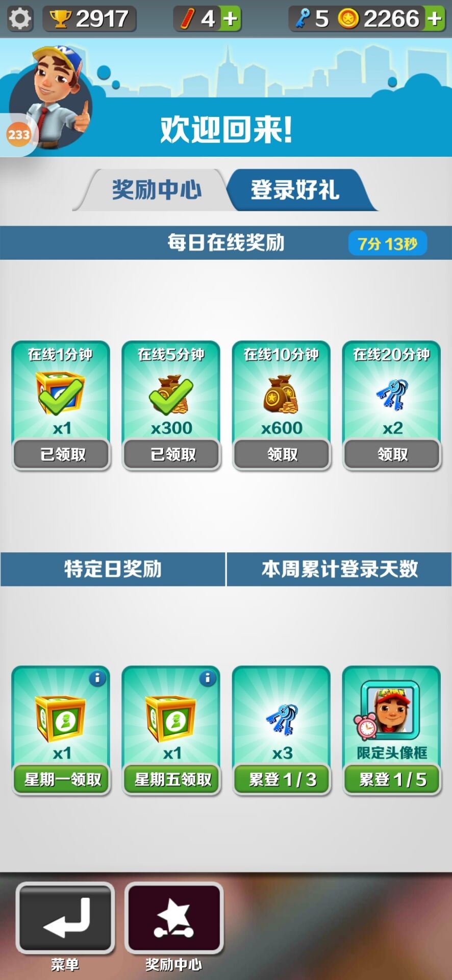 1.      每日在线奖励