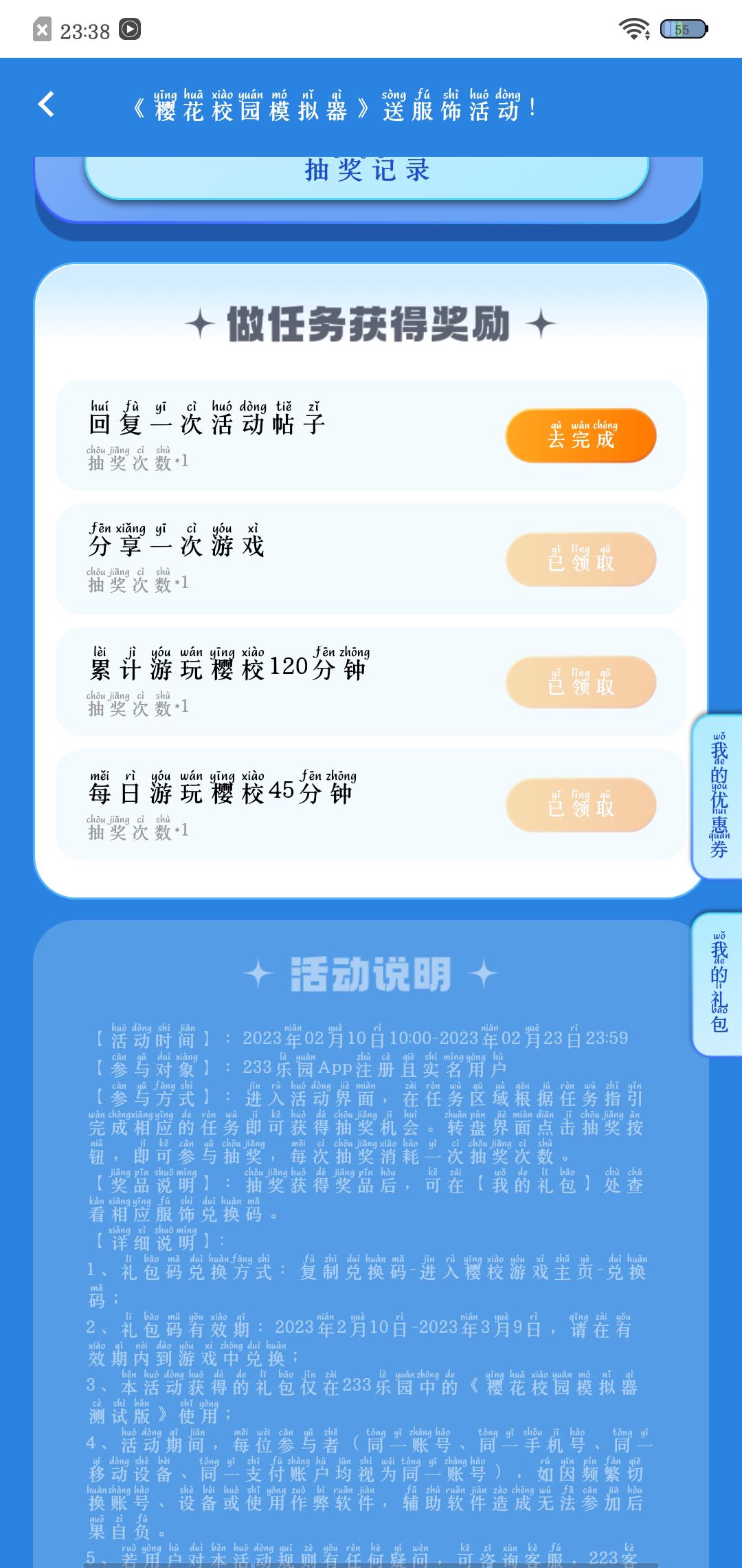 就在这里找到的就可以在这参加了,呀做完一个任务就可以中奖啦。😉