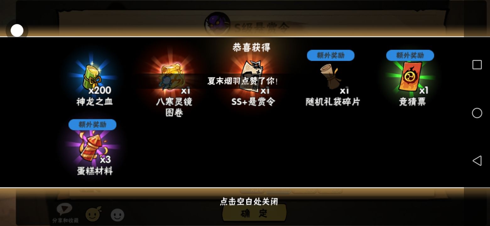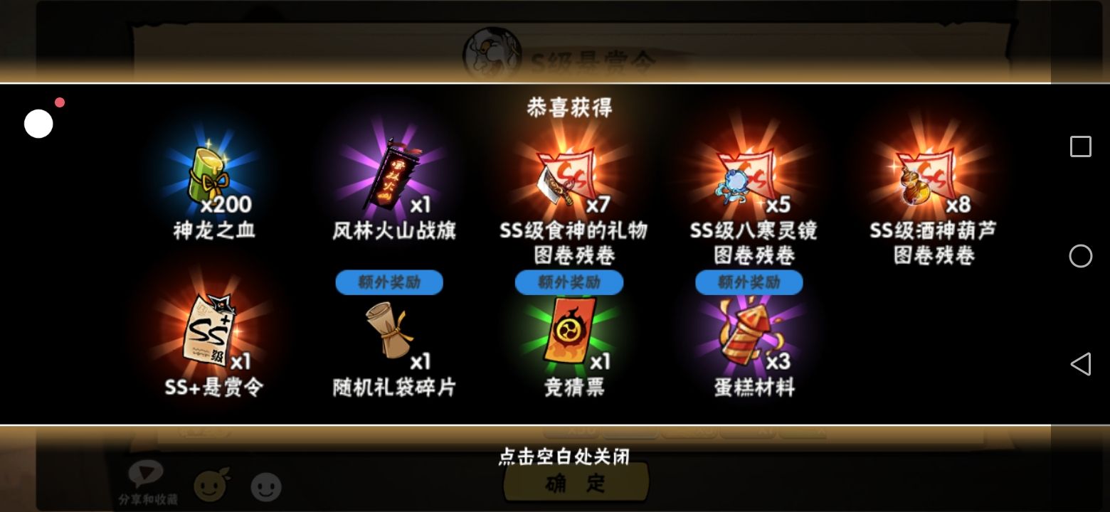 这两天忍币买了俩s级的悬赏令,然后两个居然都报了两个ss加运气是真的