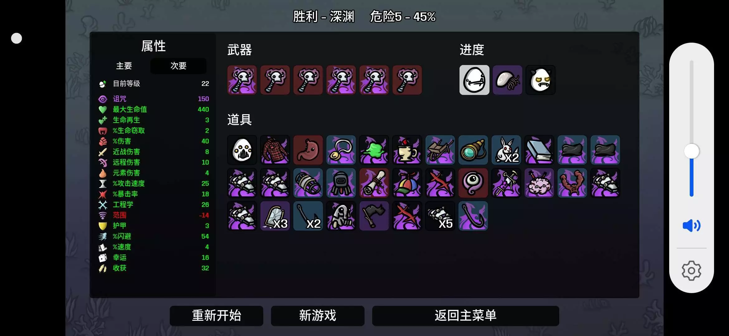 一个不小心自曝把boss崩死了一个不小心又跌到了1000攻速,一个不小心又跌到100诅咒。一个不小心又刷出了全红卡。一个不小心,一小时打完了345难度。