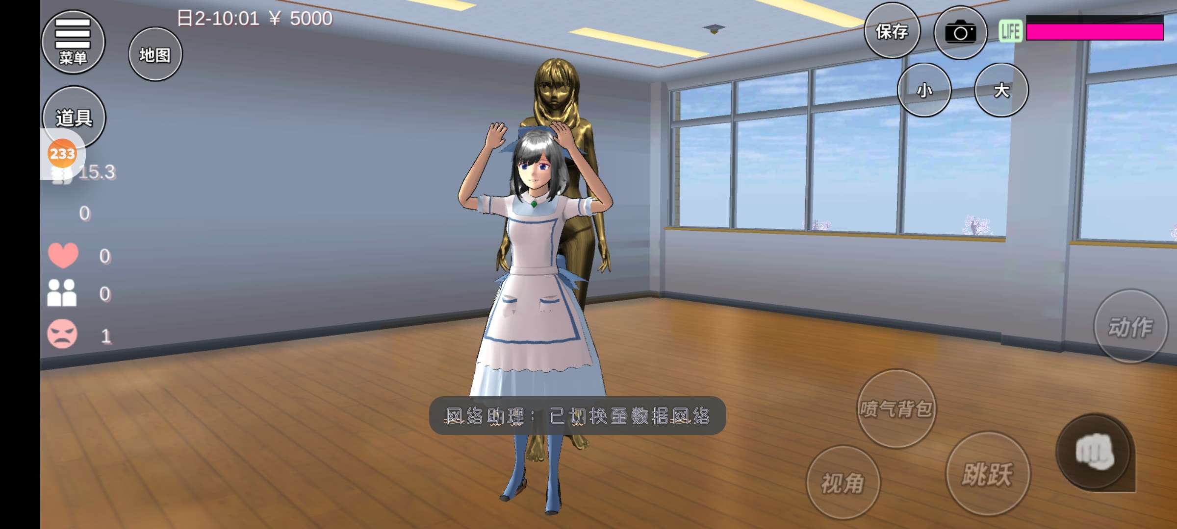 正在去公司的路上...拿出被炉切换男主,走到公司(别说男主绿绿的挺好看🌞)找到女主后点动作(记得要前一点点,然后再ⅹ10)一直点,点到男主跳下去再切换女主如果你看到了黄金那么说明你成功了,然后再向左边偏一点儿(切记不要在没得到黄金之前跳下去)快去试试吧!