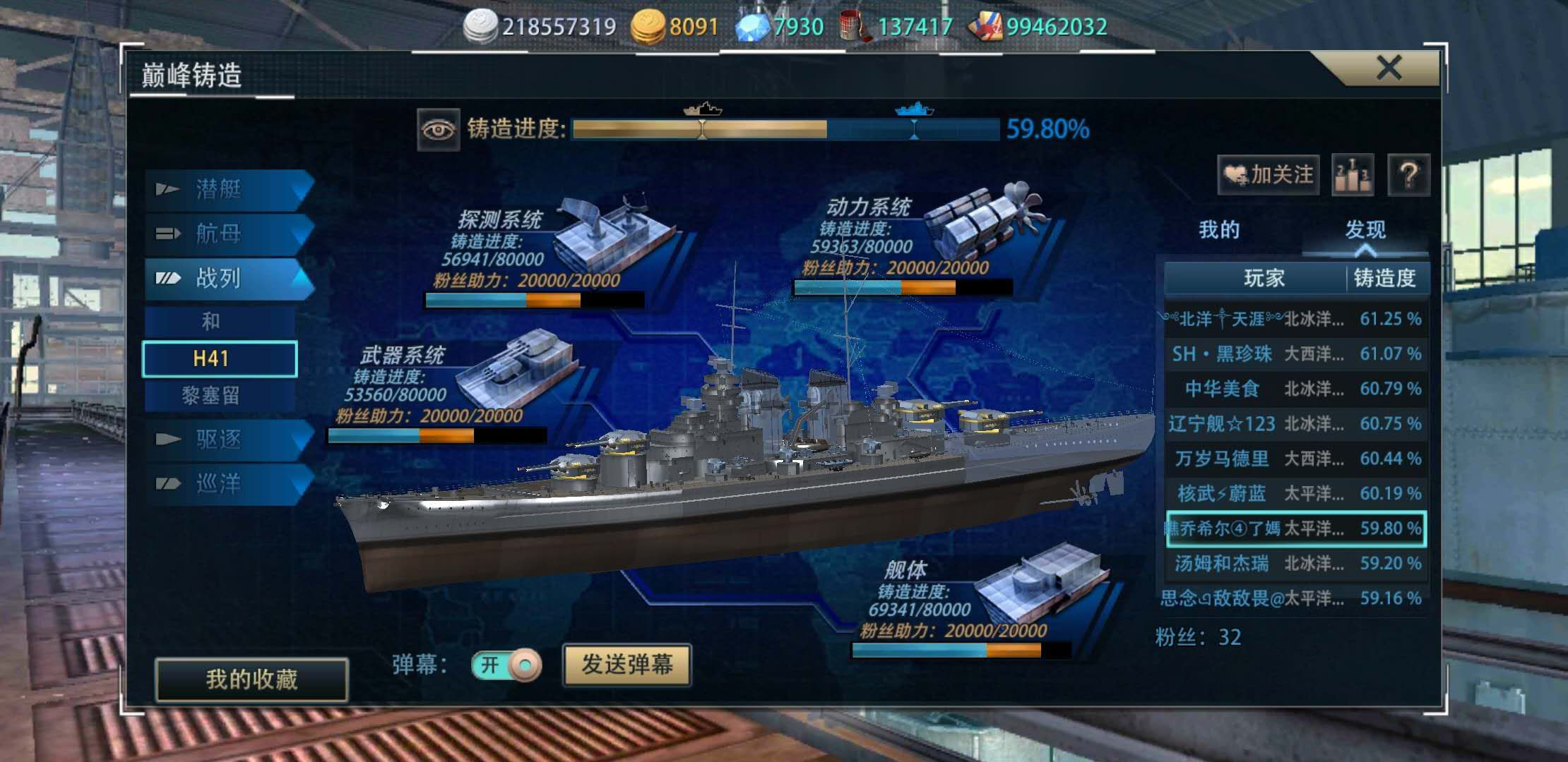 好多朋友问我穷人怎么铸造出来的,所以在此我把铸造心得写一下供大家参考参考。可能我说的大家都知道,但是请耐心看完,因为总有您忽略的,也许看完之后对您会有所帮助。考虑到经济性和快速性兼容,把铸造过程定位在两个半月到三个月的时间段。首先,铸造分为探测、动力、武器、舰体和组装五大块,以铸造41为例(下面都以41为例来说明,就不在一一列举了),每块需要铸造点八万点,共计四十万点。其中每块都可以找朋友助力两万点(别管有偿还是无偿),这些助力是很必要的,可以大大缩短我们的铸造过程,必须搞。然后,商城每天有卖铸造钢十次(2200金币,必买)和小铸造宝箱五次(4000金币,尽量买,量力而行),铸造钢需要买109天,也就是说铸造钢需要1090个,这个是必买的,因为组装是绕不过去的坎,买铸造刚可以在组装的时候省不少金币。小铸造宝箱量力而行,在保证每天买铸造刚的前提下尽量多买。其次,功绩商店,舰队商店,军功商城和竞技商城都有材料可以兑换,具体换哪个性价比最高请大家细心计算了。告诉大家一个小秘密,铸造的动力系统是最容易掉落和大家的库存最多的,可以先不考虑用各种渠道兑换,应该首先兑换武器系统的材料,武器系统中又以主炮材料给的铸造点数最多,还是那句话,计算好性价比。军港里的海事中心可以探索材料,优先推荐五个小时的主炮紫图和四个小时的舰体或雷达材料。战舰工厂里可以研发材料,有时间的可以研发一小时的最低级材料,如果不能保证一小时收材料但是可以经常上线的就要研发蓝色材料,这样性价比最高。武器材料千万不要把十阶武器材料的黄图给兑换铸造点了,黄图获得不易,武器改造大量需要,大家一定要珍惜。动力系统是最容易获得的,所以要注重舰体武器和探测系统的铸造,起头并进,不要一骑绝尘,争取四大基础系统几乎同时铸造完工,早日进入组装阶段。最后获得材料的方式就是肝常规了,不要盲目开双倍掉落,我实测的盲目开双性价比并不高,应该在系统给双倍掉落的时段再开双倍掉落卡,这样有四倍的掉落。另外肝常规要用五星未改建的船,在常规同时尽可能多的完成每局给的战斗任务,战斗任务完成后给的箱子也有几率开出基础铸造材料,而且一艘船打够六万点还会给五星成员。四倍掉落刷常规的时候局数要比胜利更重要。目前只想起这么多了,可能还有没想到的获得材料方式,大家要注意游戏公告,开动脑筋,在规则允许之内多多获取材料,争取早日铸造成功。祝大家万事如意!