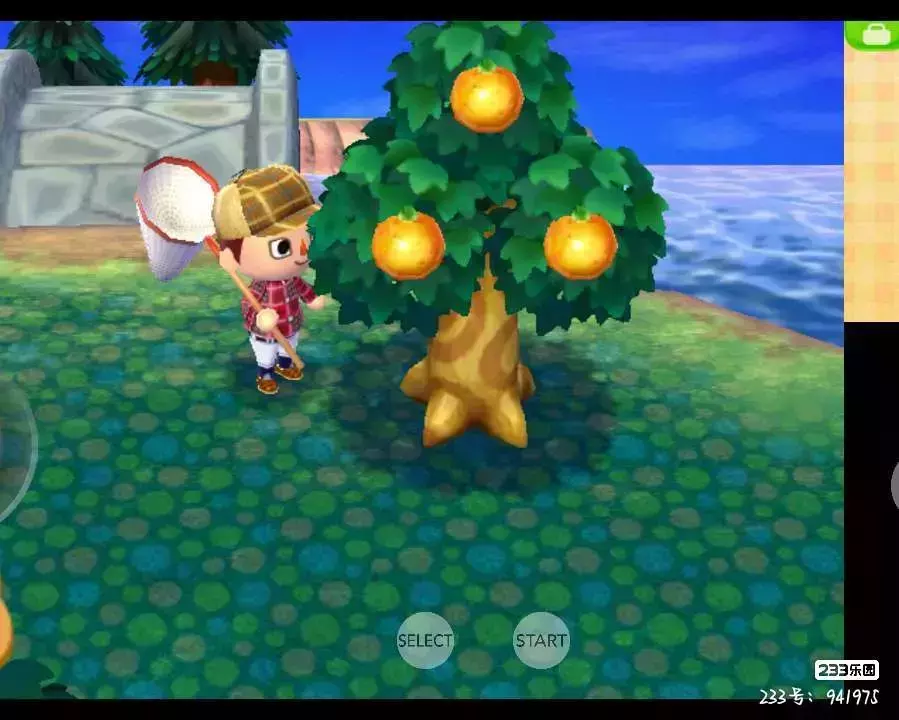 我选了一个较为居中的岛,树就是这个橘子树,后续想要获得其他其他的果树可以通过与别人联机和找助理一直询问生活上的建议获得“三个梨子”