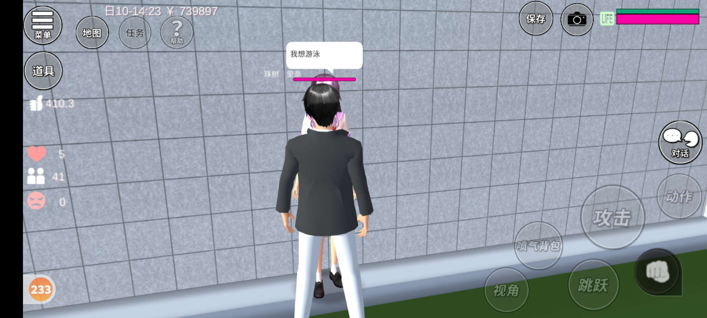 (应为腿的问题,所以没游多久)