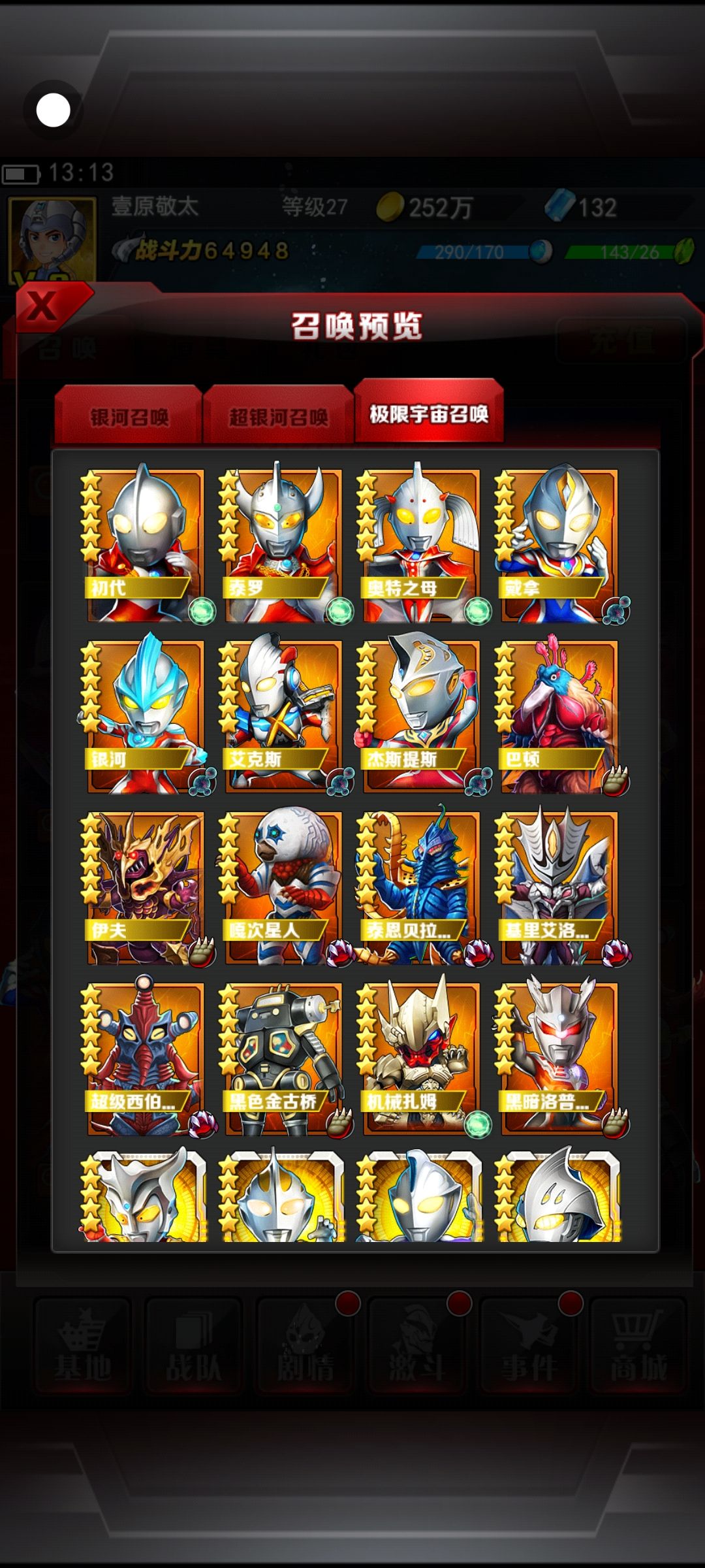 【400+奥特曼怪兽史上最全收集】 ※收集:最全最新 ※在众多奥特曼游戏中,收录最全最新奥特曼和怪兽,目前多达400个,持续更新中 【战斗形态切换,策略烧脑不烧钱】 ※特色:自由切换形态 ※完美贴合原著IP,奥特曼随战斗切换形态,经典策略搭配,告别枯燥战斗观看 【玩法还原经典】 ※玩法:还原经典 ※原汁原味经典还原人间体、宝物变身器。备受玩家好评的剧情,欧布列传、因帕克危机、时空城 【完美还原技能特效】 ※特效:酷炫还原 ※超良心还原各奥特曼招牌光线技能动作与特效,细致入微深受好评