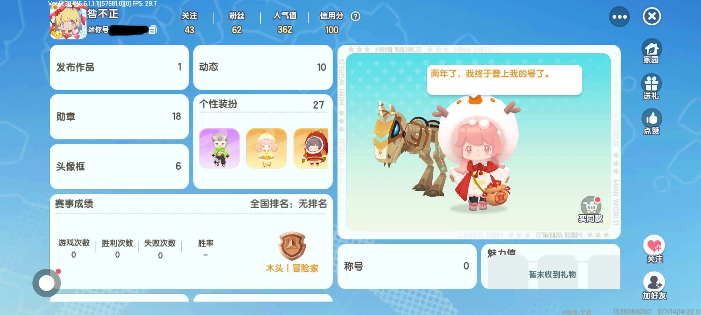 这两年的时间里我改了两次名字,你还是能找到我,两年里我一直没有忘记游戏里有你这么一个人,可是分开这么长时间,你已经长大了,不再是两年前那个小孩儿了。😐如果可以重开我还是希望,四年前能在游戏里遇到你