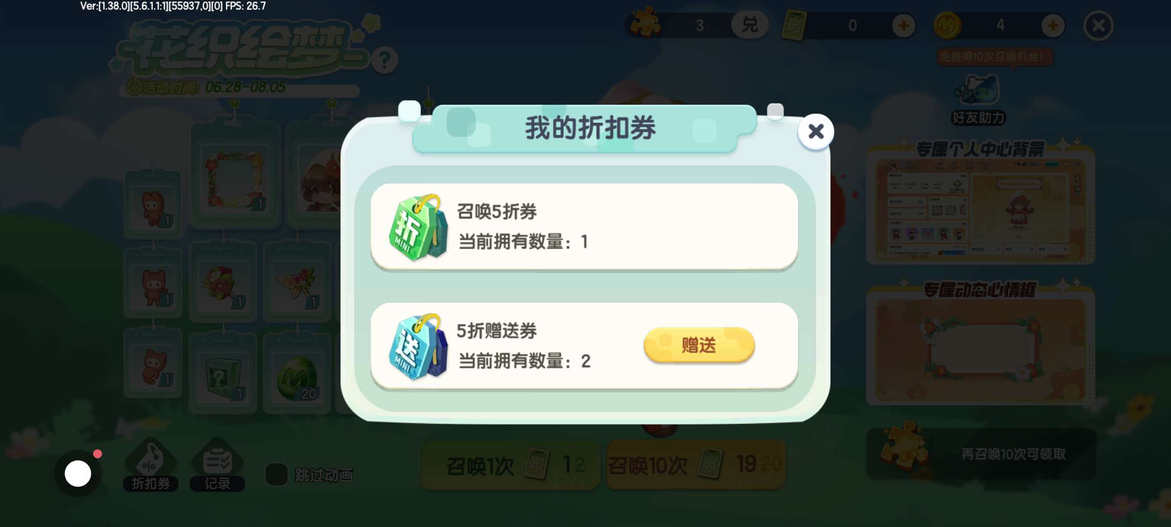 还有两个赠送卷,我留着也没什么用了,谁要,加我迷你好友,我就给了